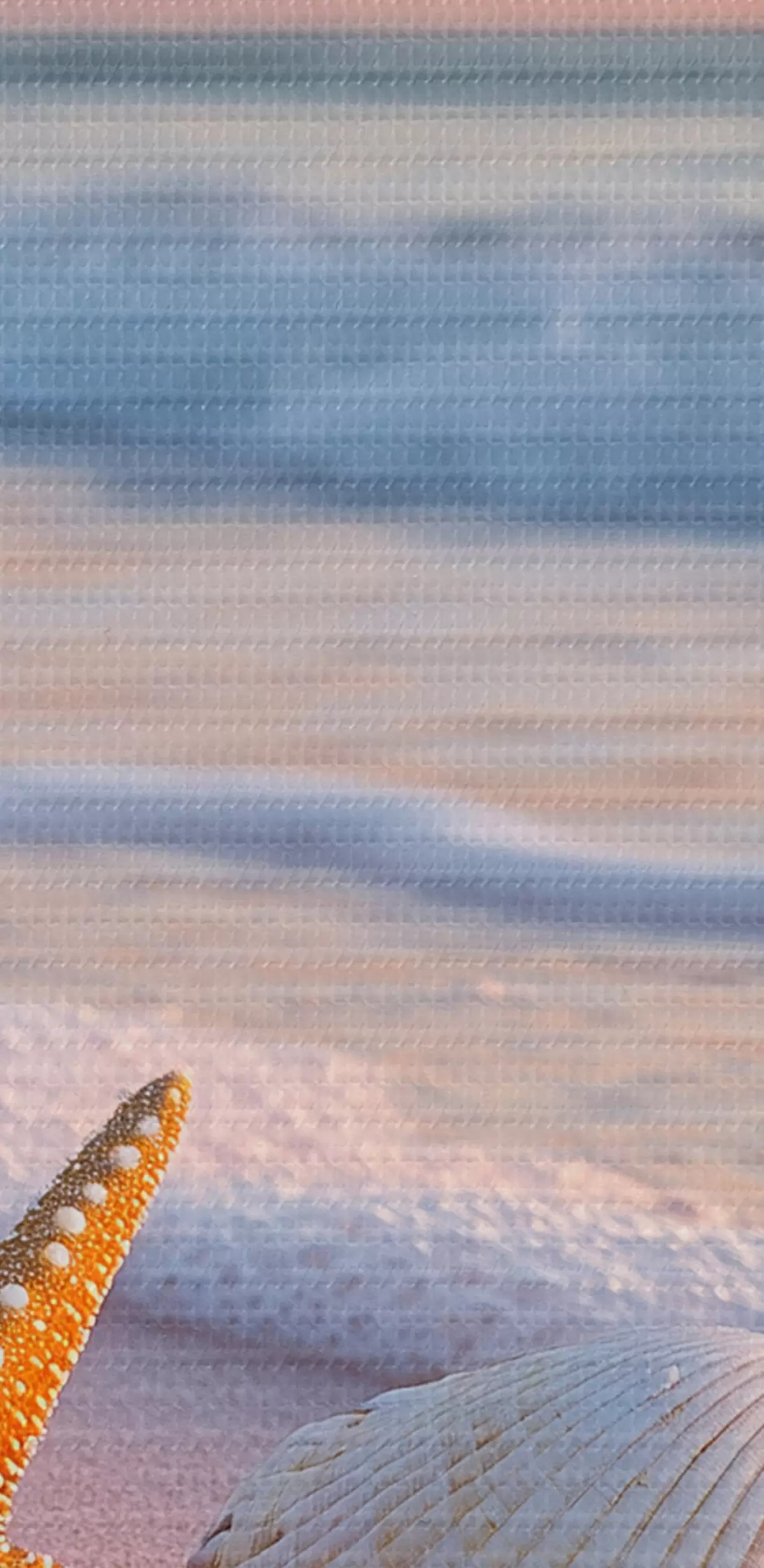 Okrągły obraz Wybrzeże morskie z rozgwiazdami, muszlami i falami Nr r44714