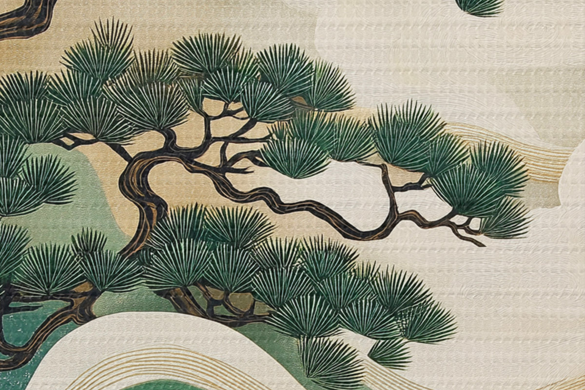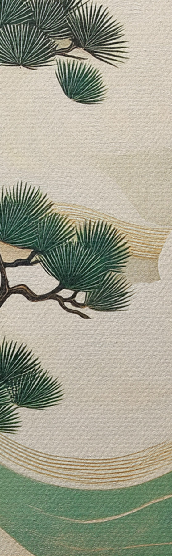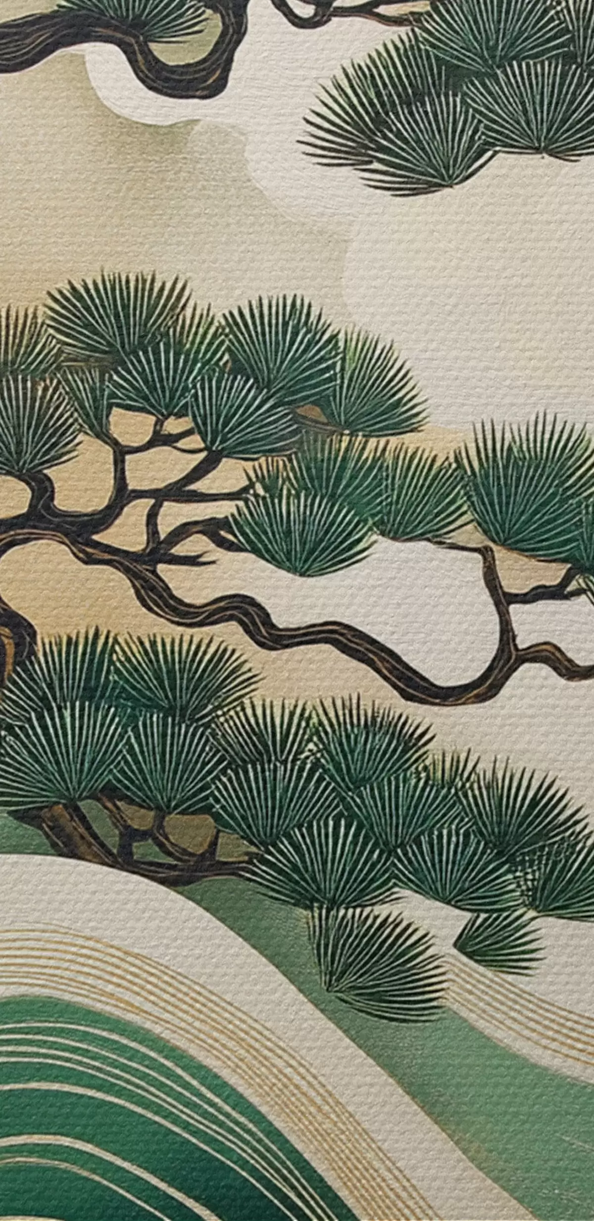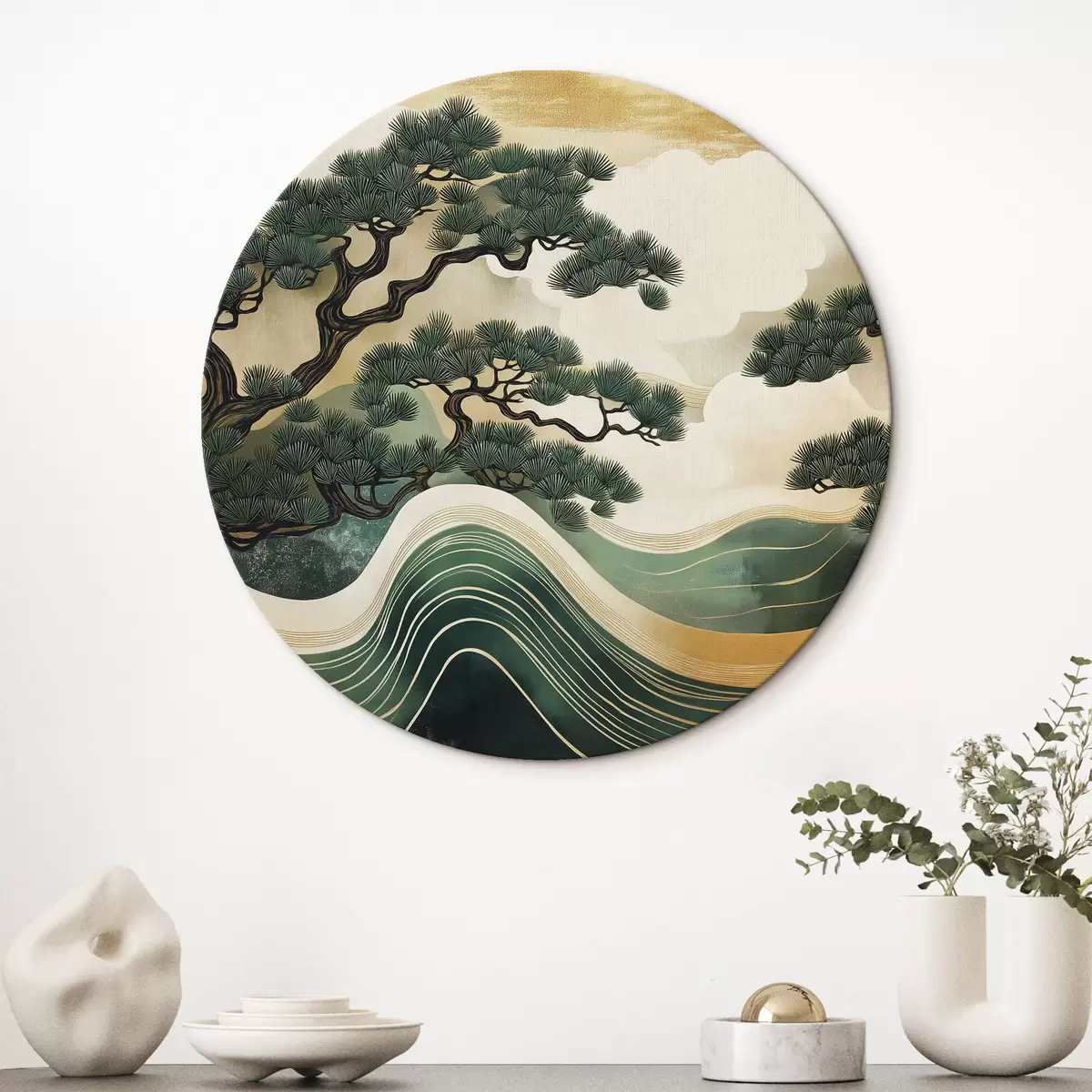 Okrągłe obrazy Abstrakcyjne krajobrazy z sosnami, styl chiński r44720