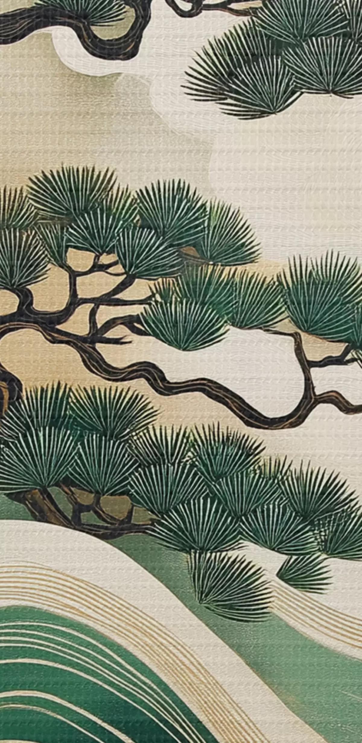 Okrągły obraz Abstrakcyjne krajobrazy z sosnami, styl chiński Nr r44720