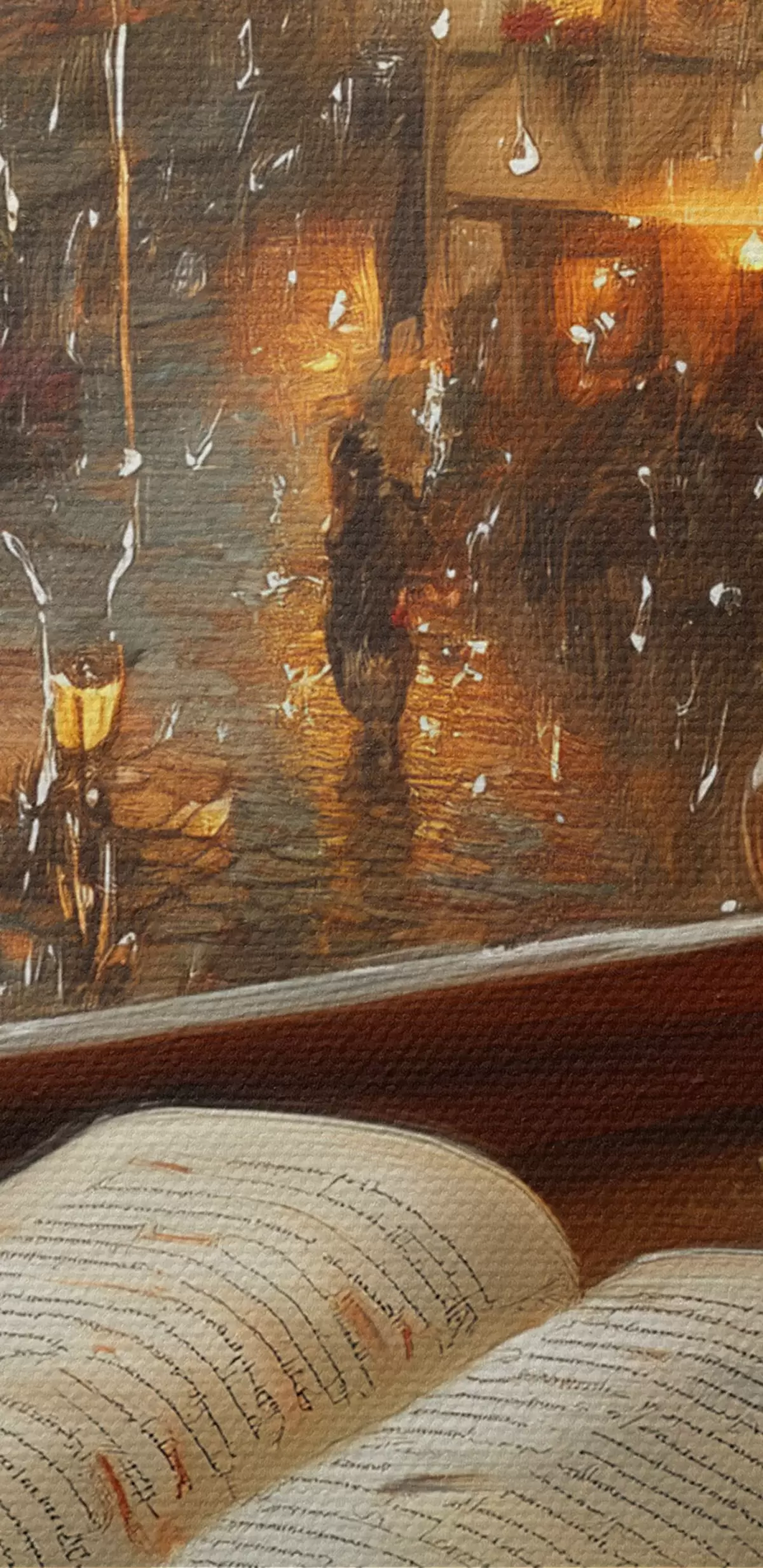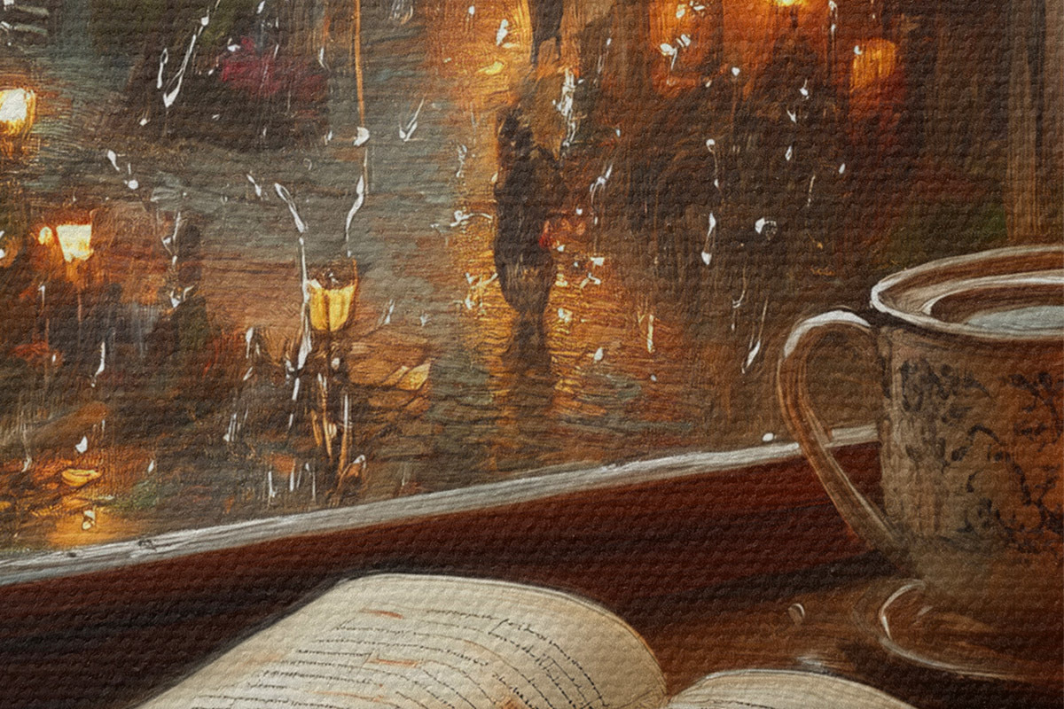 Okrągłe obrazy Książka na parapecie, świece, deszczowy dzień, przytulnie r44722