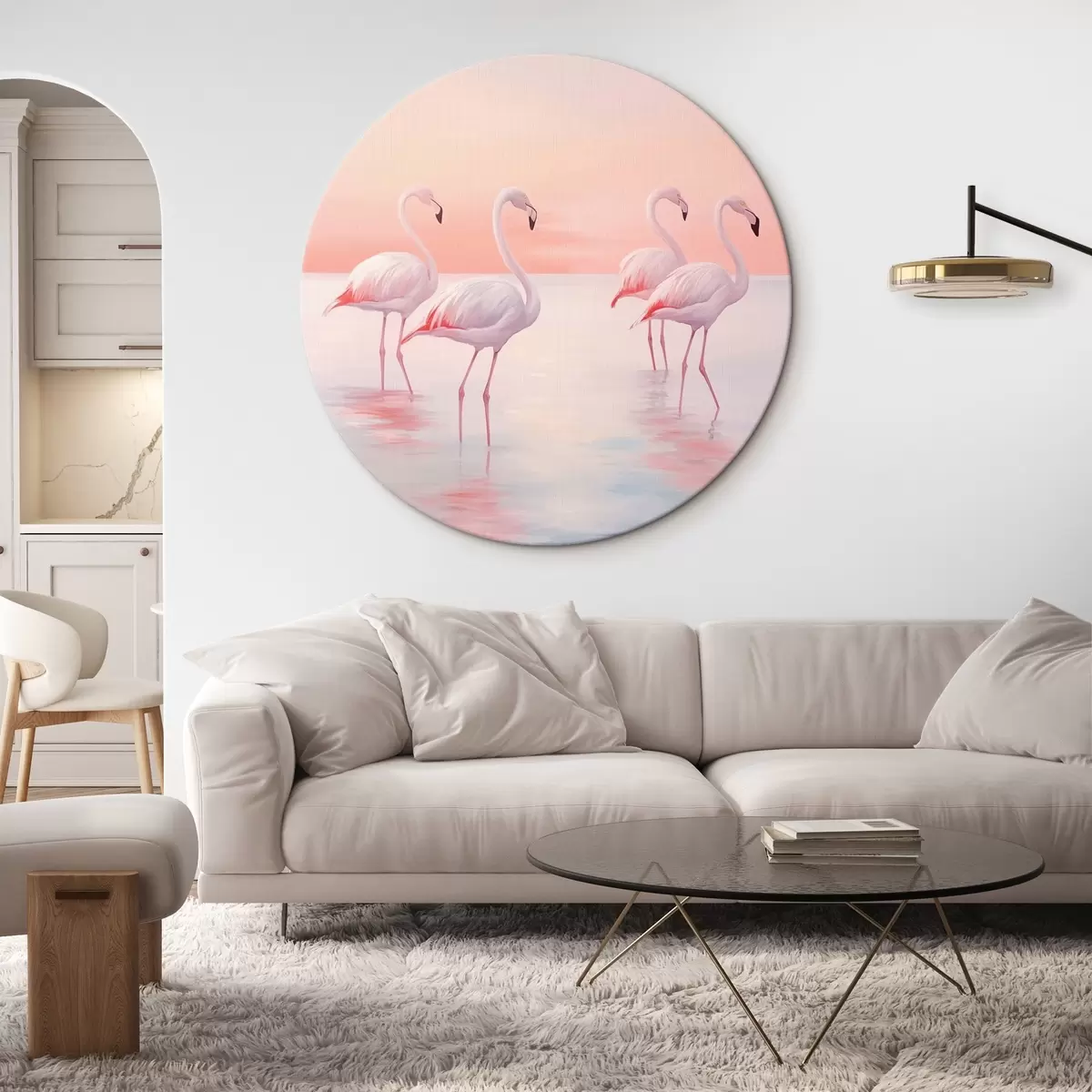 Okrągłe obrazy Flamingi w płytkiej wodzie o zachodzie słońca r44732
