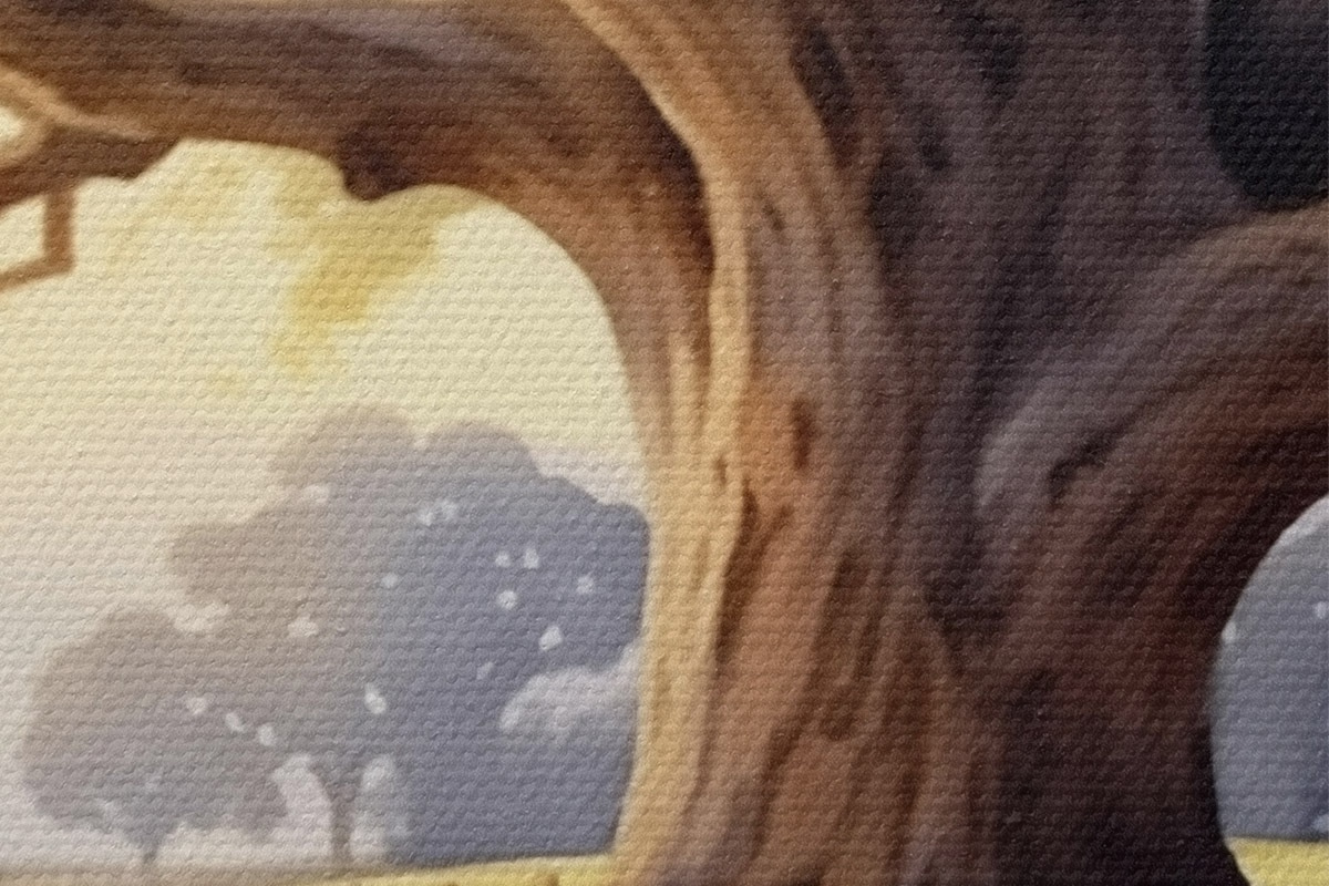 Drobny splot nici na tym płótnie przypomina powierzchnię profesjonalnych płócien artystycznych.