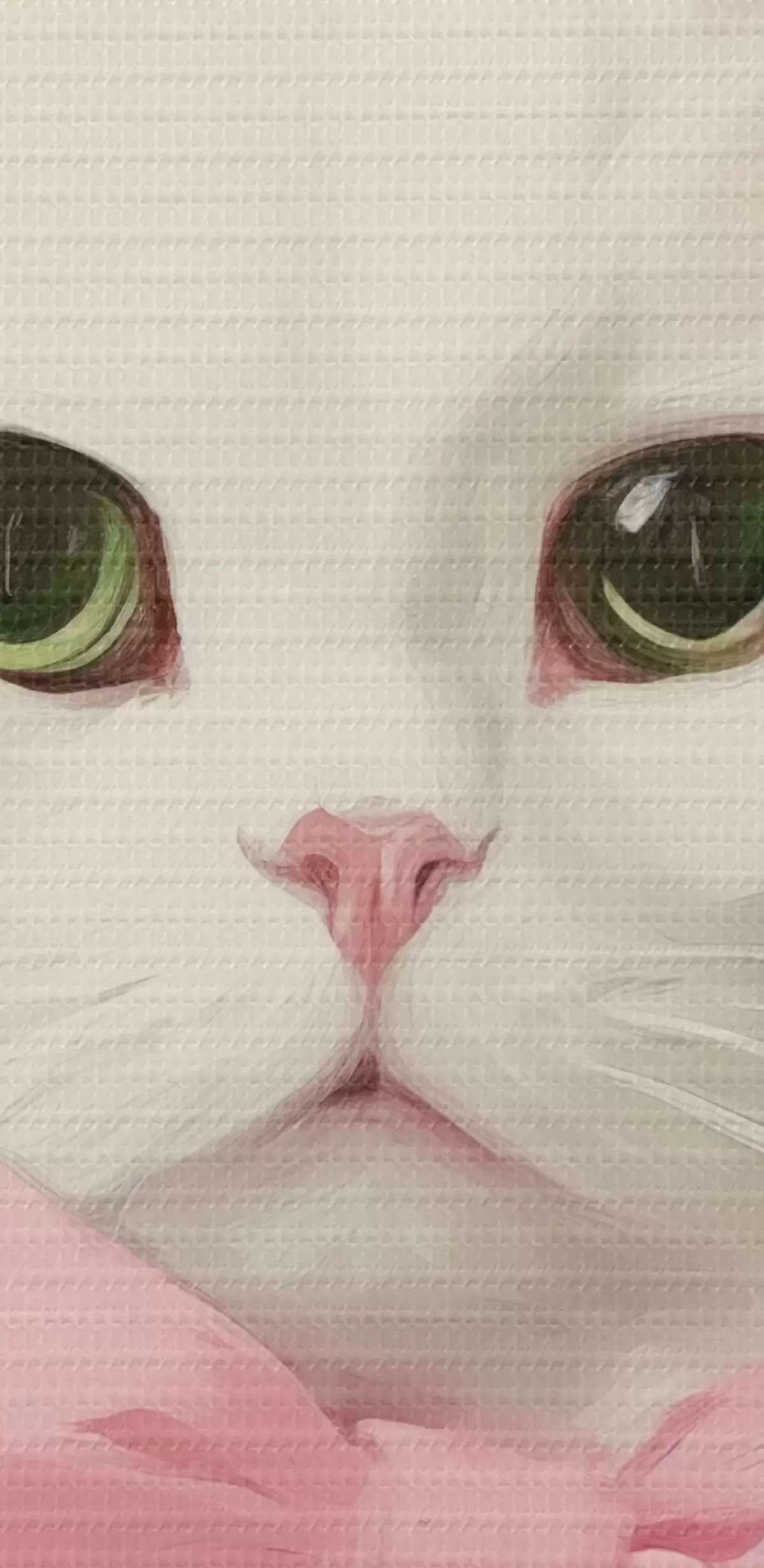 Okrągły obraz Biały kot z różową kokardą Nr r44739