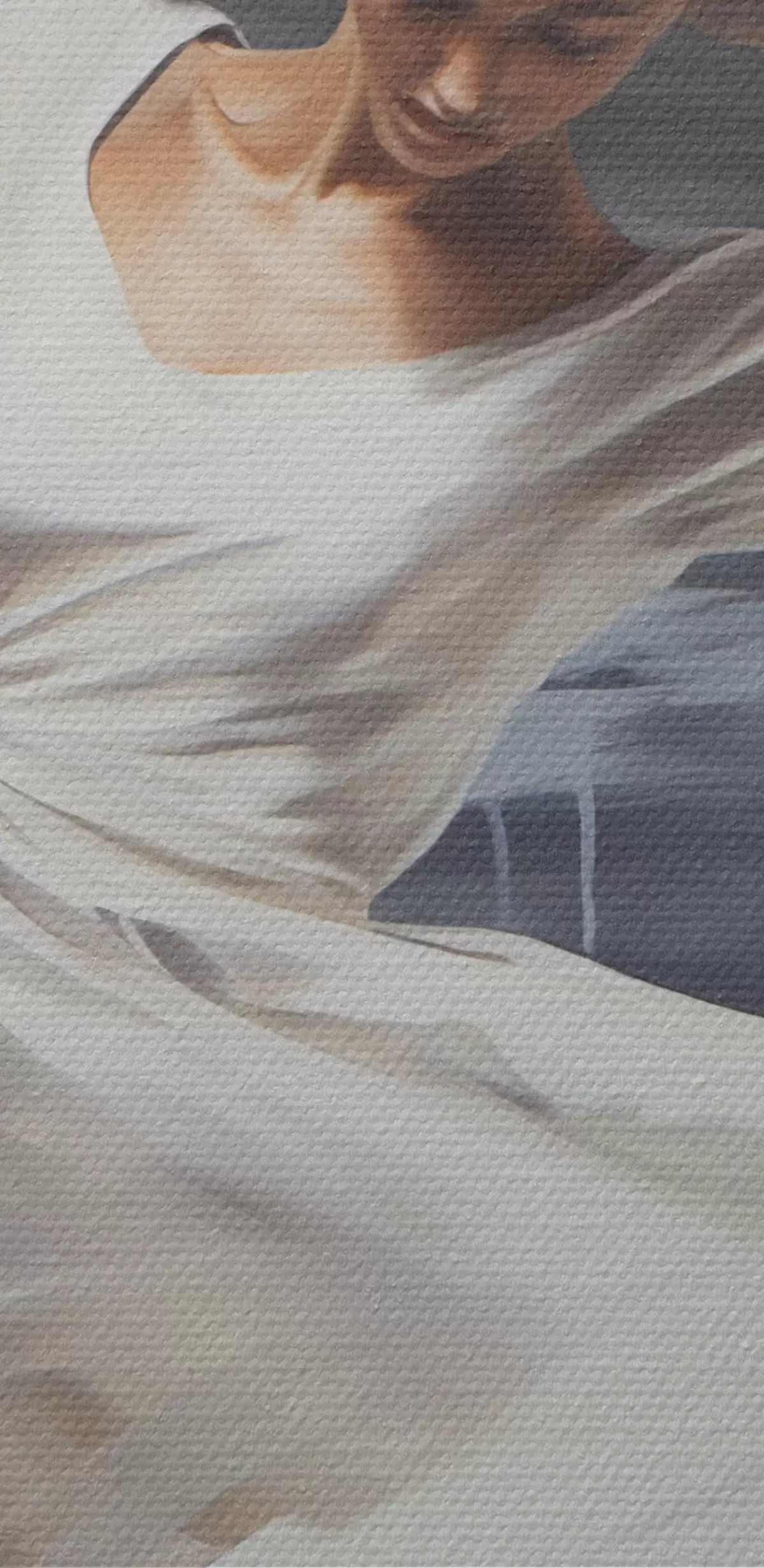Do zamówienia dostępne są trzy rodzaje materiału: Economic Canvas - gęsty i trwały materiał do druku cyfrowego, identyczny z płótnem malarskim, wodoodporna powierzchnia, realistyczne odwzorowanie szczegółów, materiał średnioziarnisty. Premium Canvas - tekstura przypominająca płótno malarskie (przeplatane drobne nitki). Miękka, szczegółowa reprodukcja obrazu na matowej powierzchni. Eco-Premium - wysokiej jakości tkanina w 100% bawełniana. Dzięki naturalnym włóknom bawełnianym materiał jest trwały i odporny na zużycie. Doskonałe odwzorowanie kolorów i szczegółów.