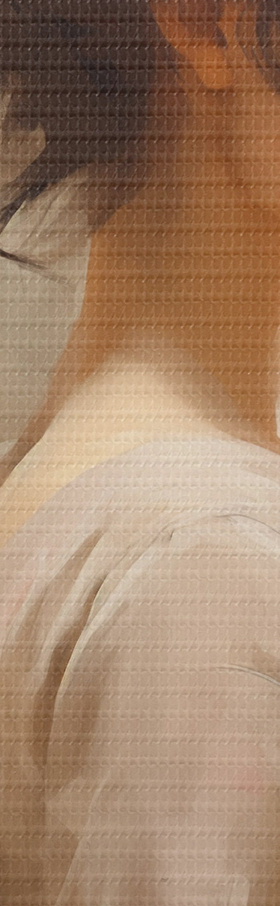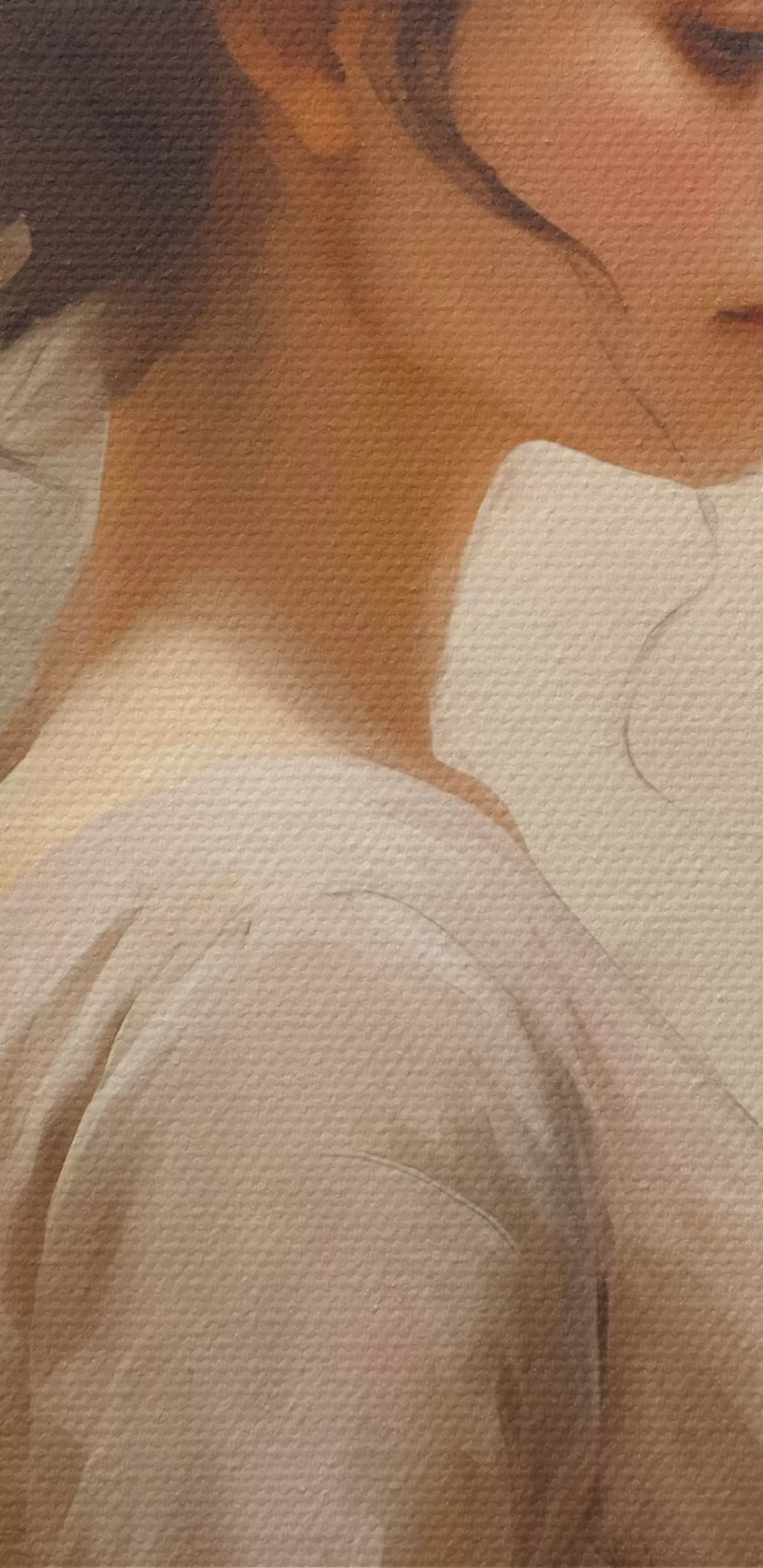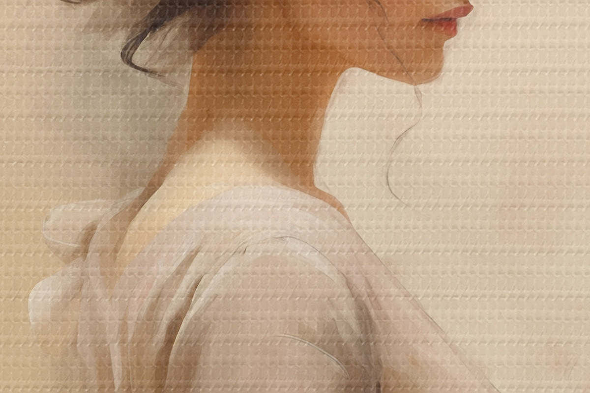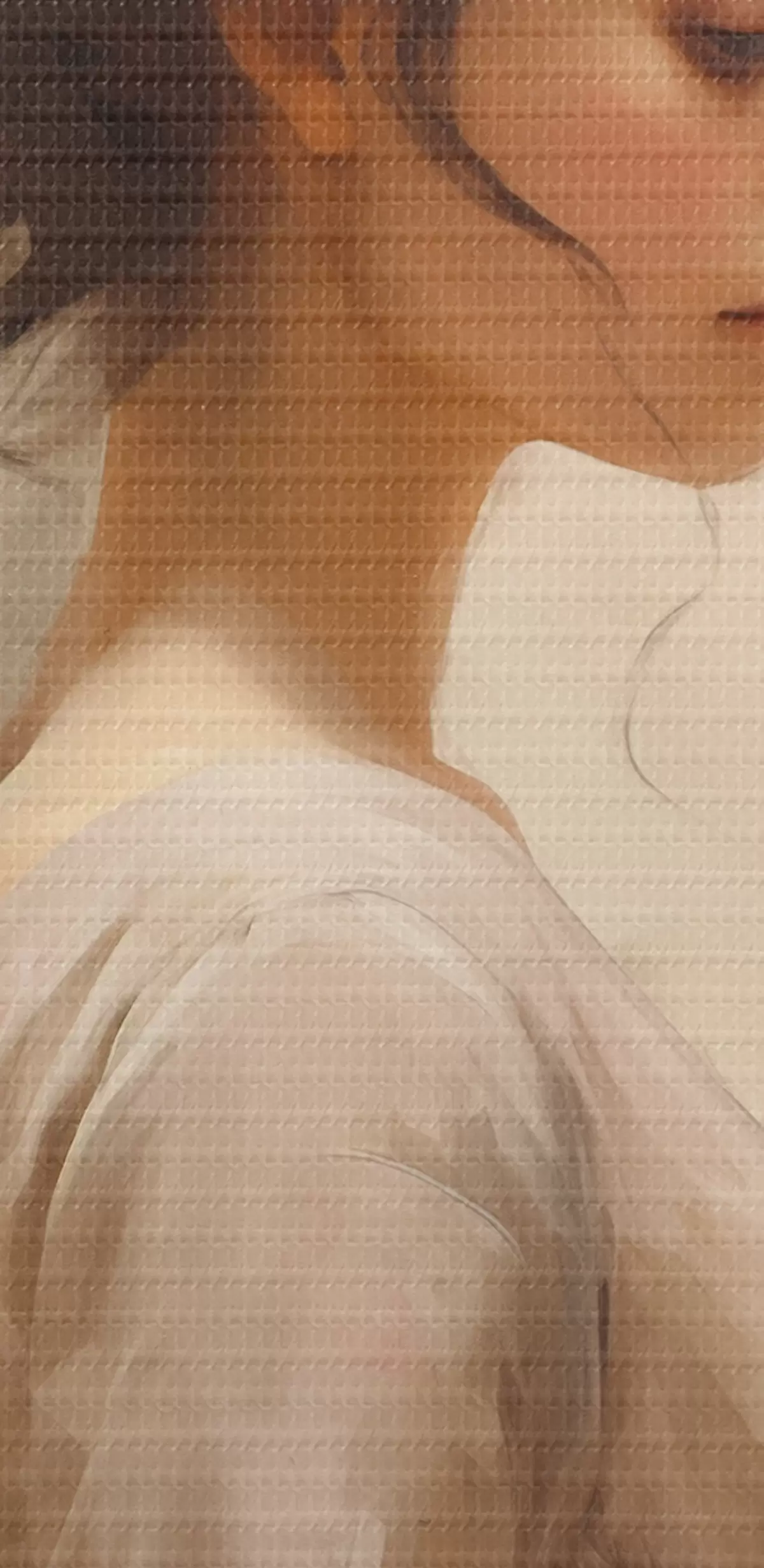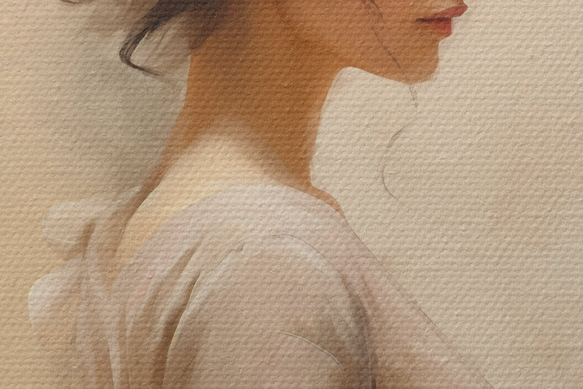 Drobny splot nici na tym płótnie przypomina powierzchnię profesjonalnych płócien artystycznych.