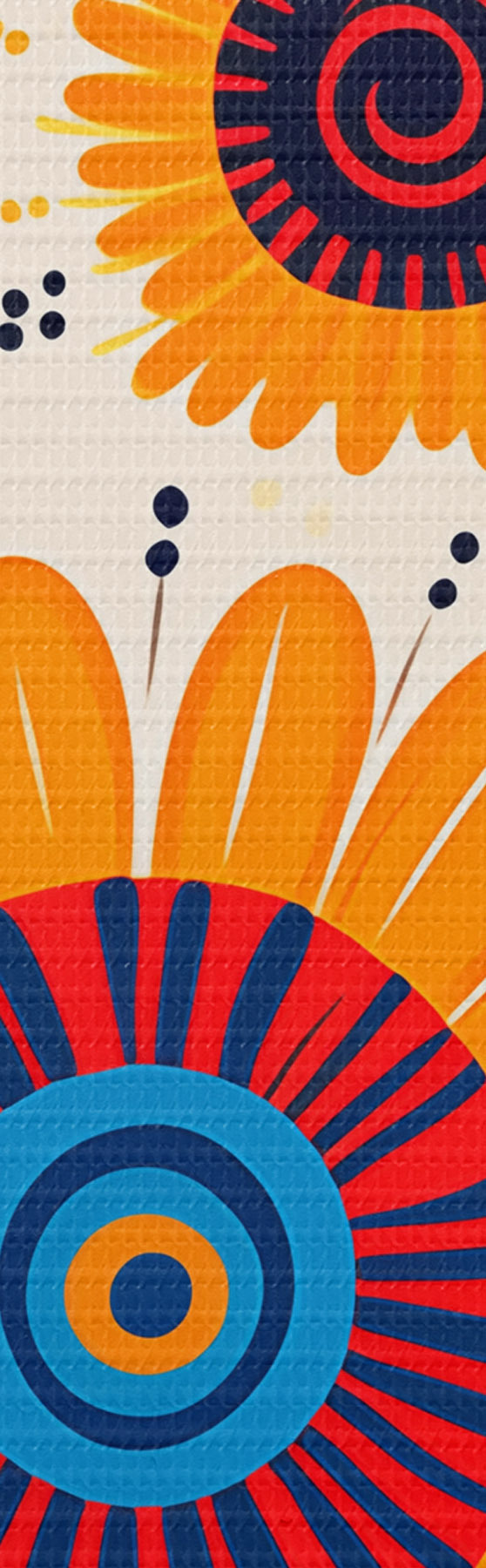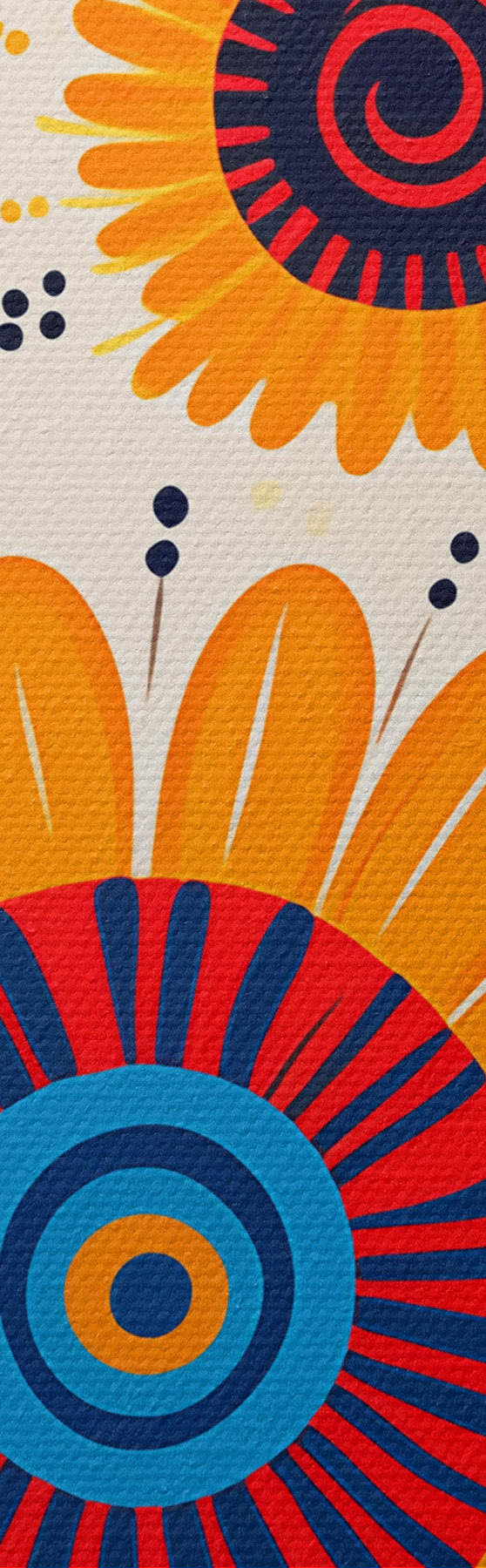 Okrągły obraz Stylizowane kwiaty w niebiesko-pomarańczowej kolorystyce Nr r44761