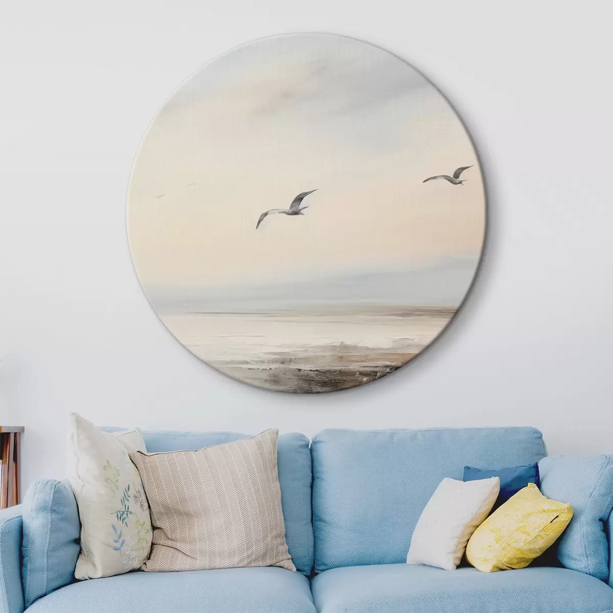 Okrągły obraz Pastelowy krajobraz z latającymi mewami Nr r44763