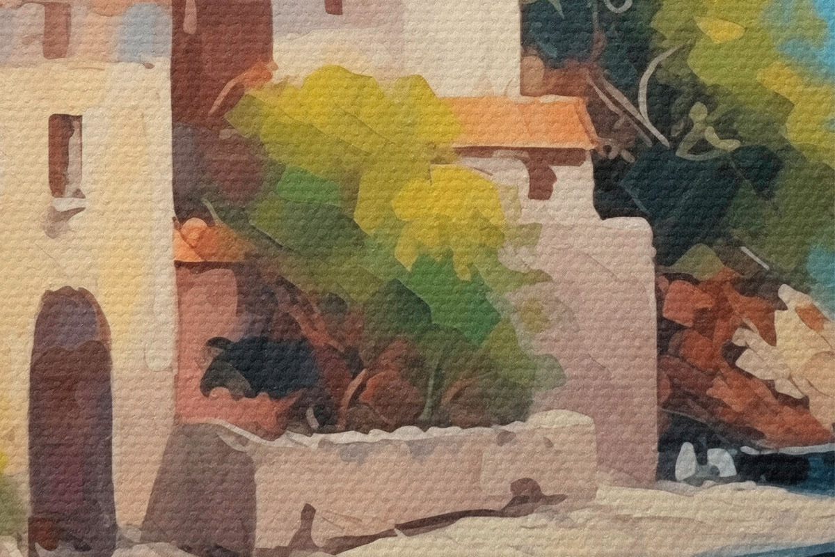 Drobny splot nici na tym płótnie przypomina powierzchnię profesjonalnych płócien artystycznych.