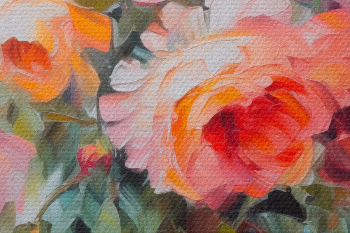 Do zamówienia dostępne są trzy rodzaje materiału: Economic Canvas - gęsty i trwały materiał do druku cyfrowego, identyczny z płótnem malarskim, wodoodporna powierzchnia, realistyczne odwzorowanie szczegółów, materiał średnioziarnisty. Premium Canvas - tekstura przypominająca płótno malarskie (przeplatane drobne nitki). Miękka, szczegółowa reprodukcja obrazu na matowej powierzchni. Eco-Premium - wysokiej jakości tkanina w 100% bawełniana. Dzięki naturalnym włóknom bawełnianym materiał jest trwały i odporny na zużycie. Doskonałe odwzorowanie kolorów i szczegółów.