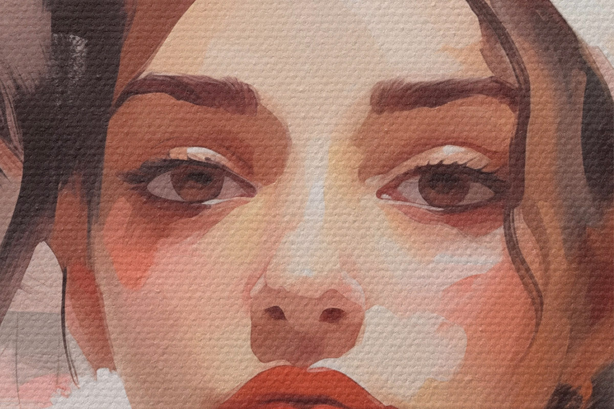 Drobny splot nici na tym płótnie przypomina powierzchnię profesjonalnych płócien artystycznych.