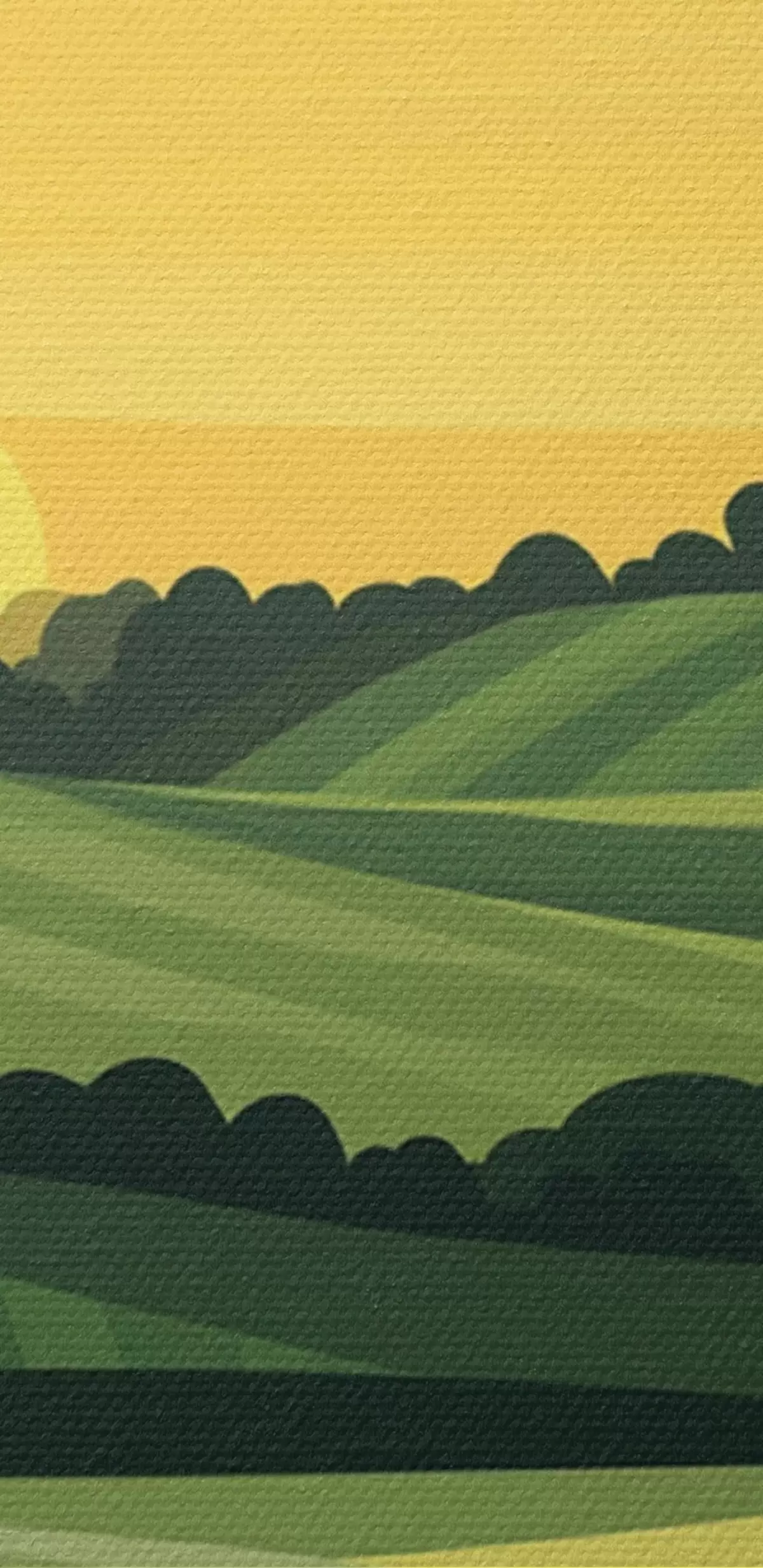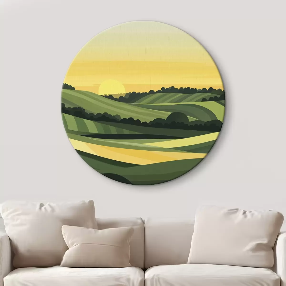 Okrągłe obrazy Abstrakcyjne krajobrazy ze wzgórzami i zachodem słońca r44785