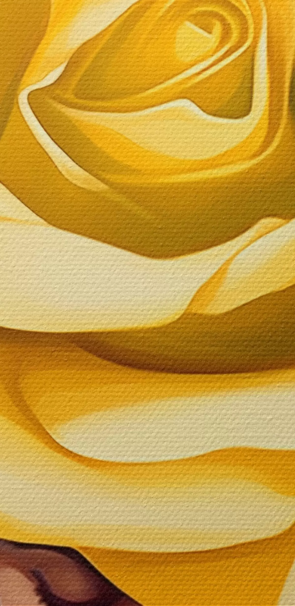 Okrągły obraz Kobieta w kapeluszu z żółtą różą Nr r44800