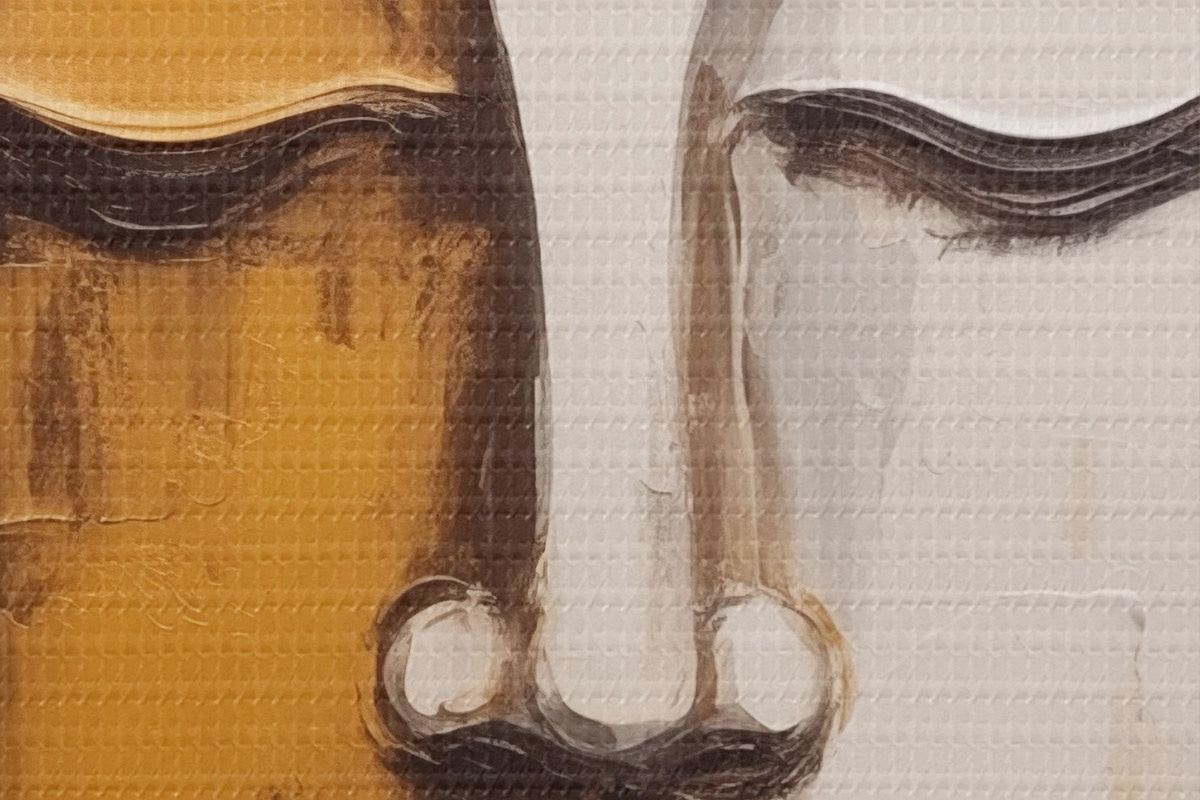 Drobny splot nici na tym płótnie przypomina powierzchnię profesjonalnych płócien artystycznych.