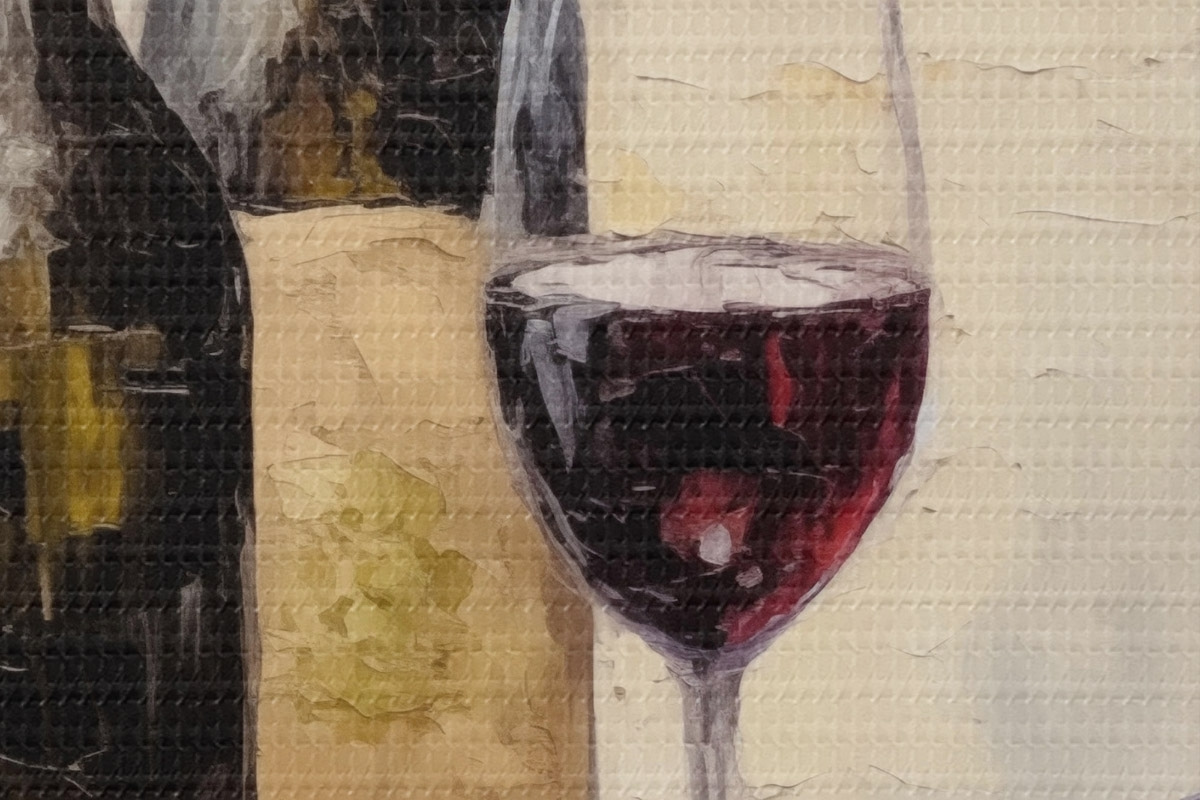 Okrągły obraz Wino, bagietka i winogrona Nr r44815