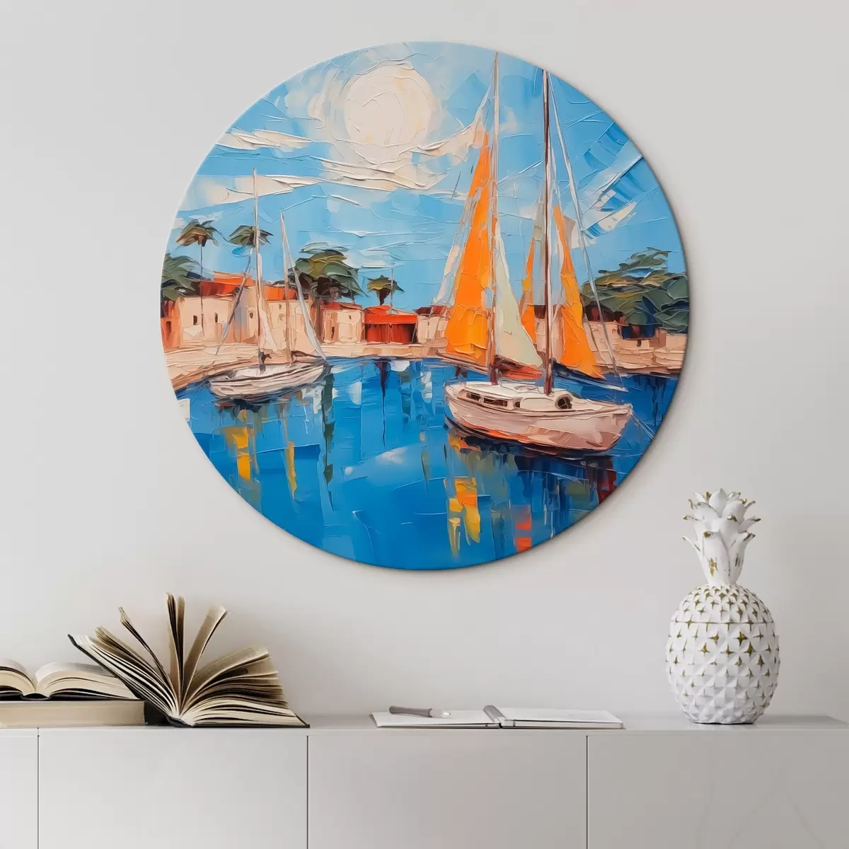 Okrągły obraz Żaglówka przy molo Nr r44824