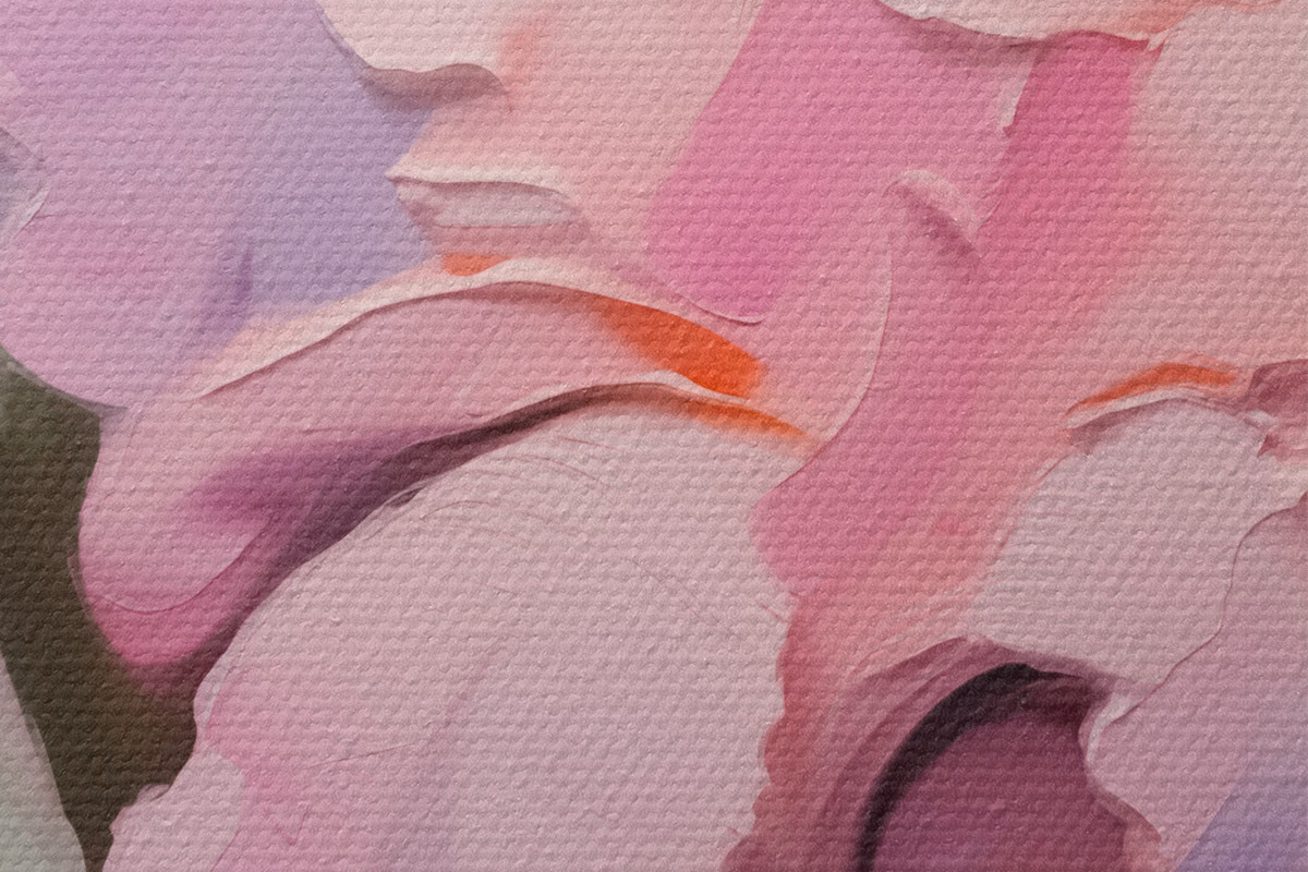 Drobny splot nici na tym płótnie przypomina powierzchnię profesjonalnych płócien artystycznych.
