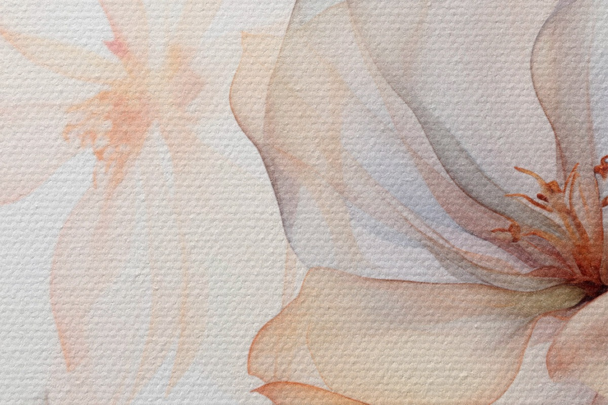 Okrągłe obrazy Półprzezroczyste teksturowane kwiaty w pastelowych kolorach, delikatne płatki, delikatne linie na białym tle r44855