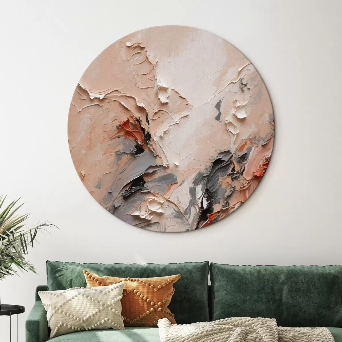 Okrągły obraz Abstrakcja w brzoskwiniowych odcieniach szarości z teksturowanymi pociągnięciami Nr r44873