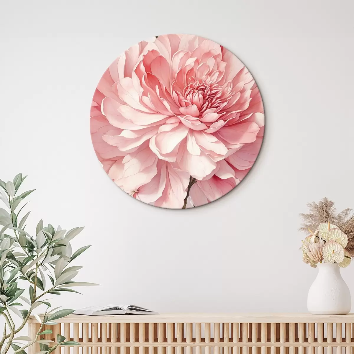 Okrągły obraz Różowa piwonia w zbliżeniu z miękkim oświetleniem Nr r44891