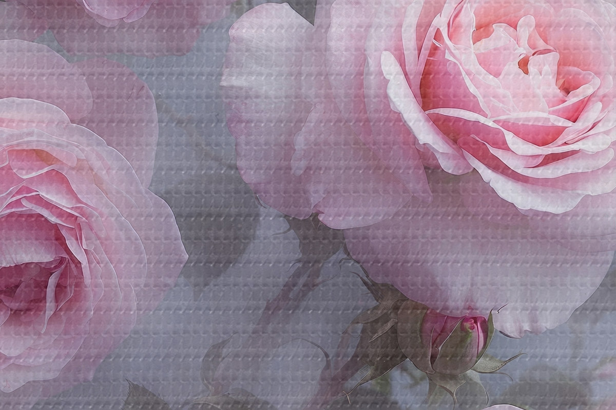 Okrągłe obrazy Delikatnie różowe róże we mgle z zielonymi liśćmi r44892