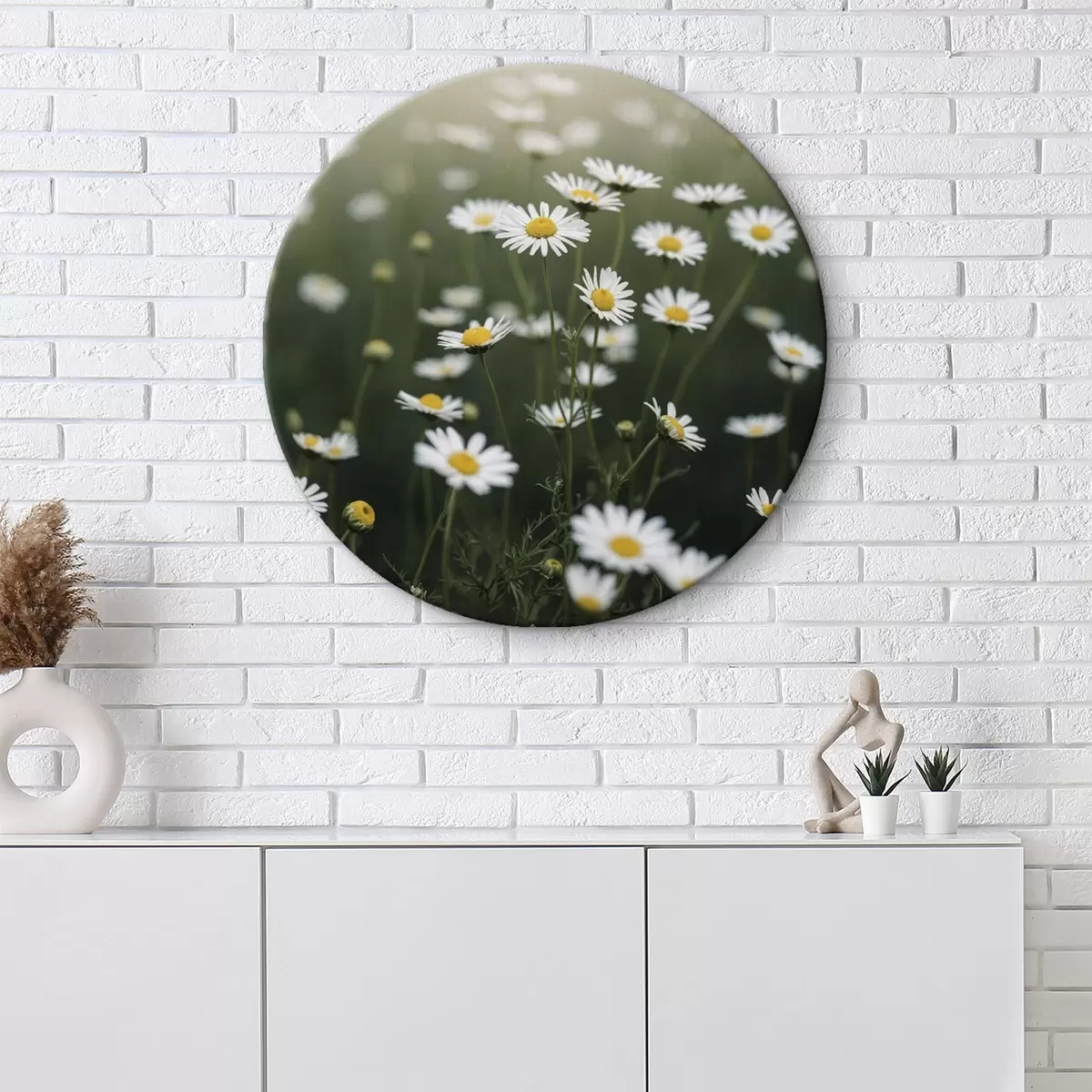 Okrągły obraz Pole stokrotek z nieostrym zielonym tłem Nr r44898