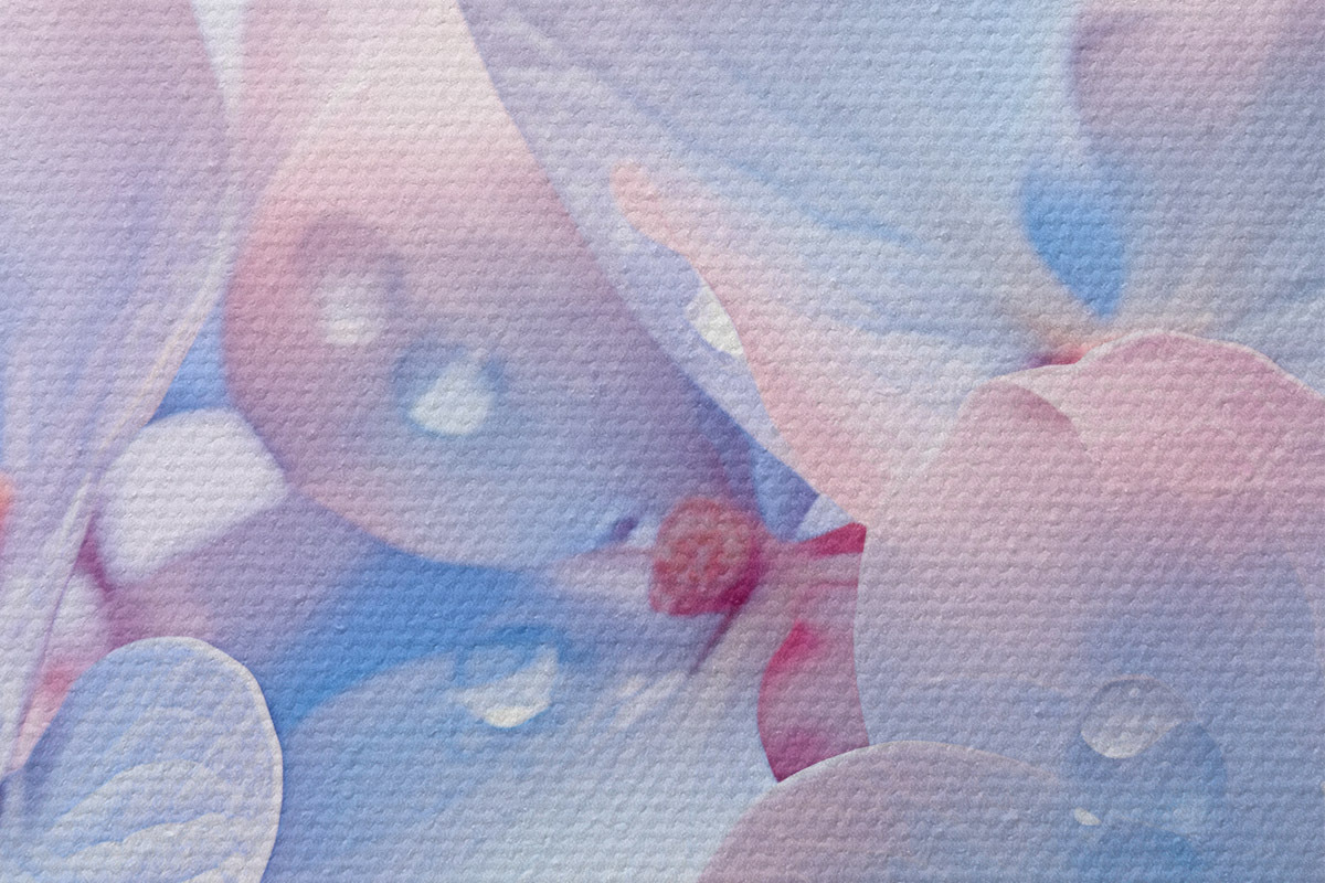 Drobny splot nici na tym płótnie przypomina powierzchnię profesjonalnych płócien artystycznych.