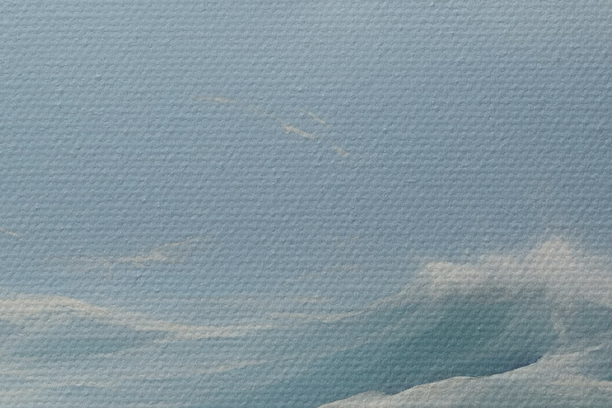 Drobny splot nici na tym płótnie przypomina powierzchnię profesjonalnych płócien artystycznych.