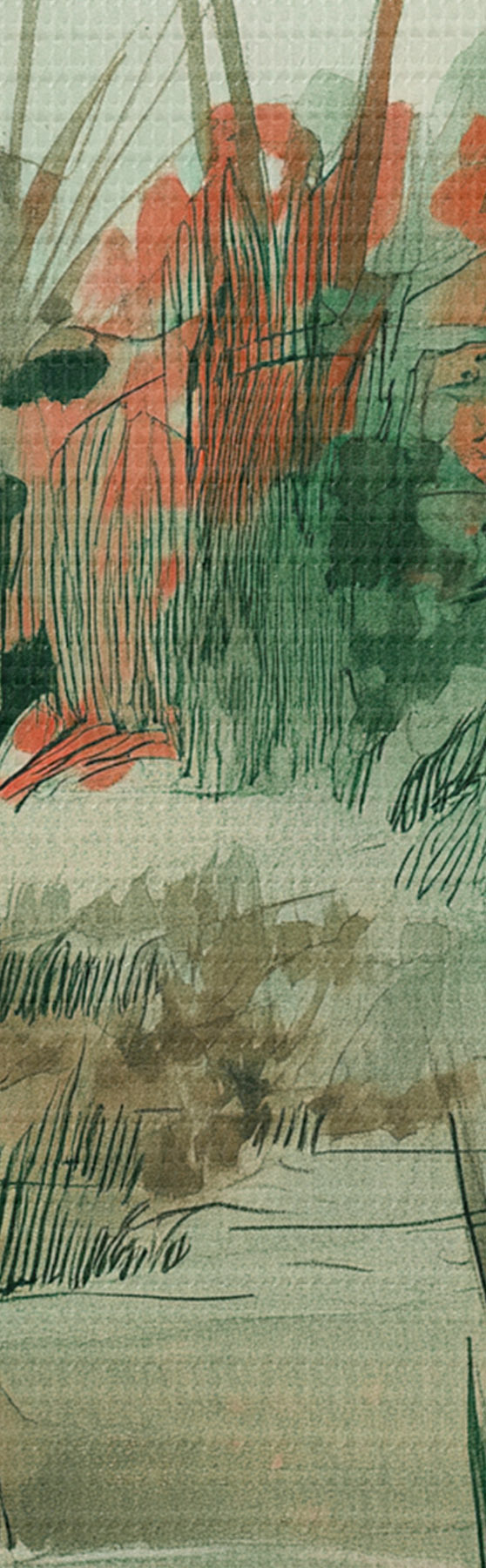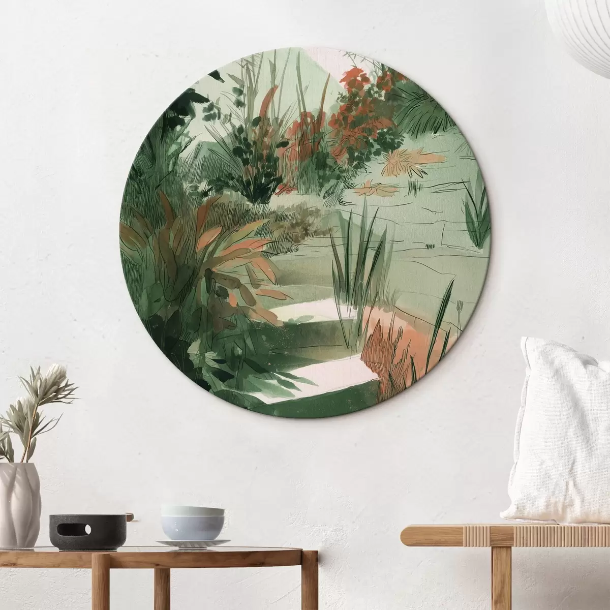 Okrągłe obrazy Orientalny ogród z krzewami i drzewami, zielone kolory r44982