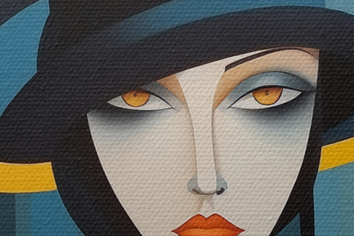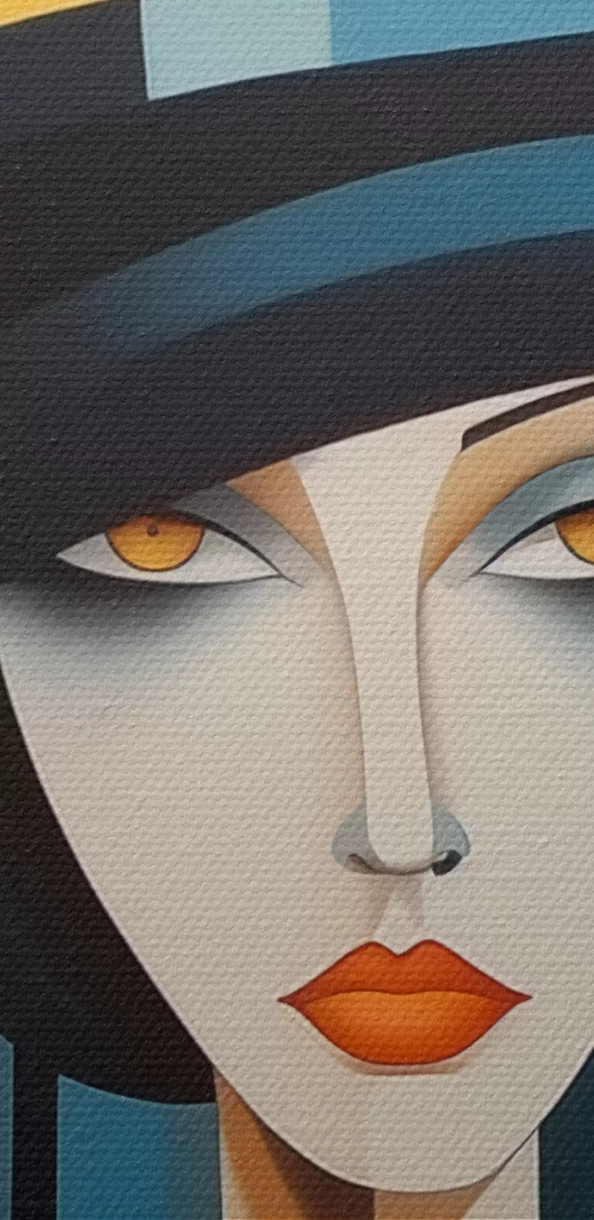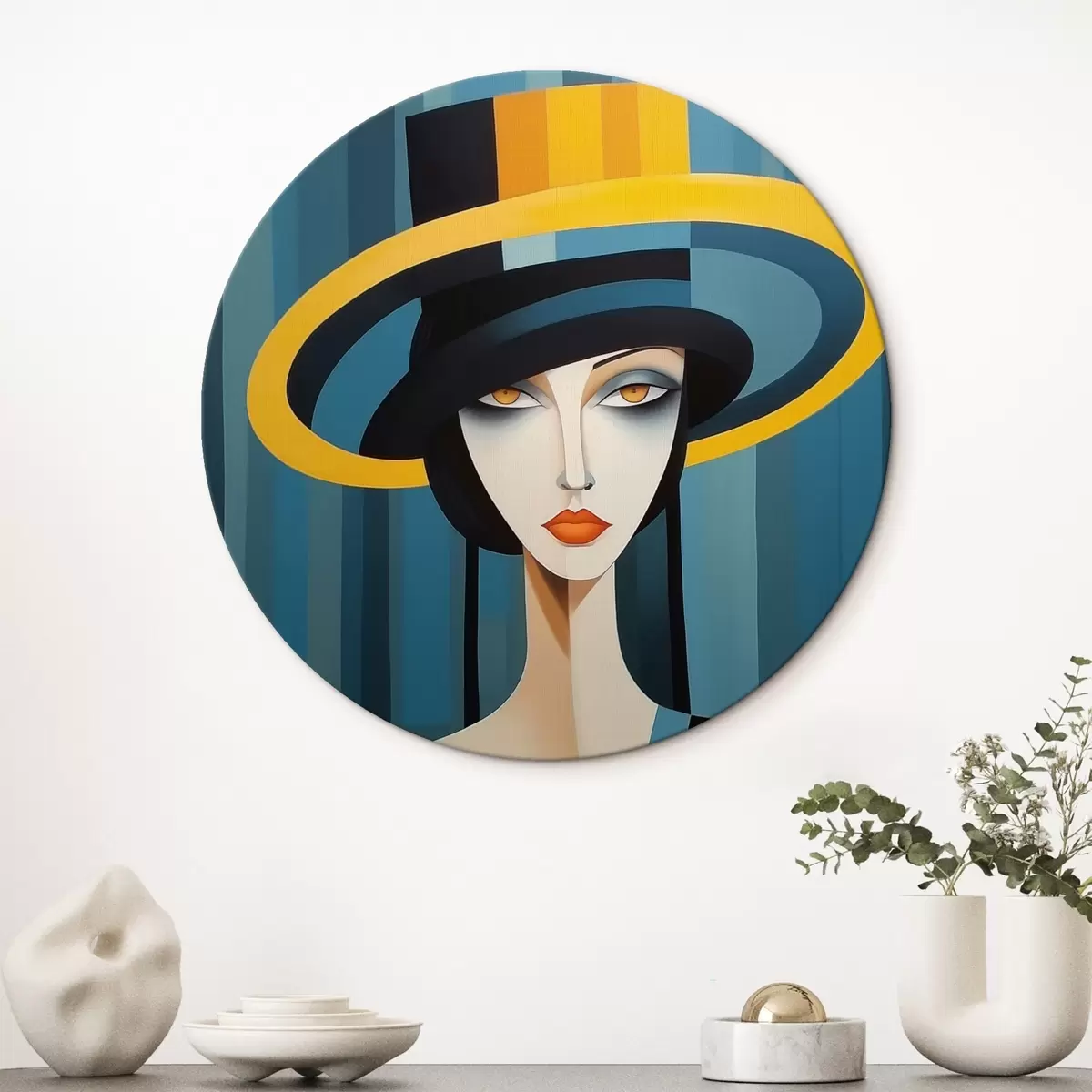 Okrągły obraz Abstrakcyjny portret kobiety w kapeluszu Nr r44990