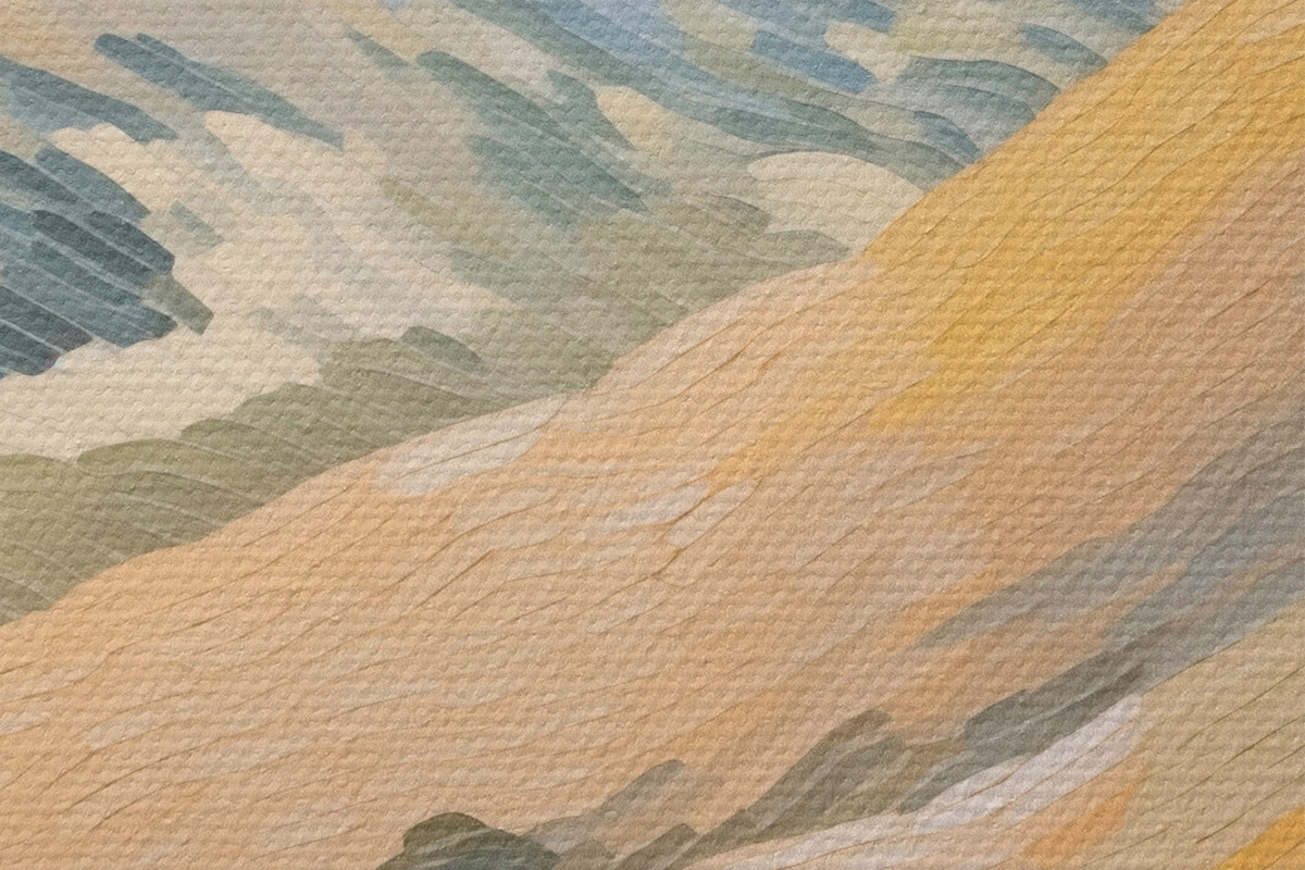 Drobny splot nici na tym płótnie przypomina powierzchnię profesjonalnych płócien artystycznych.