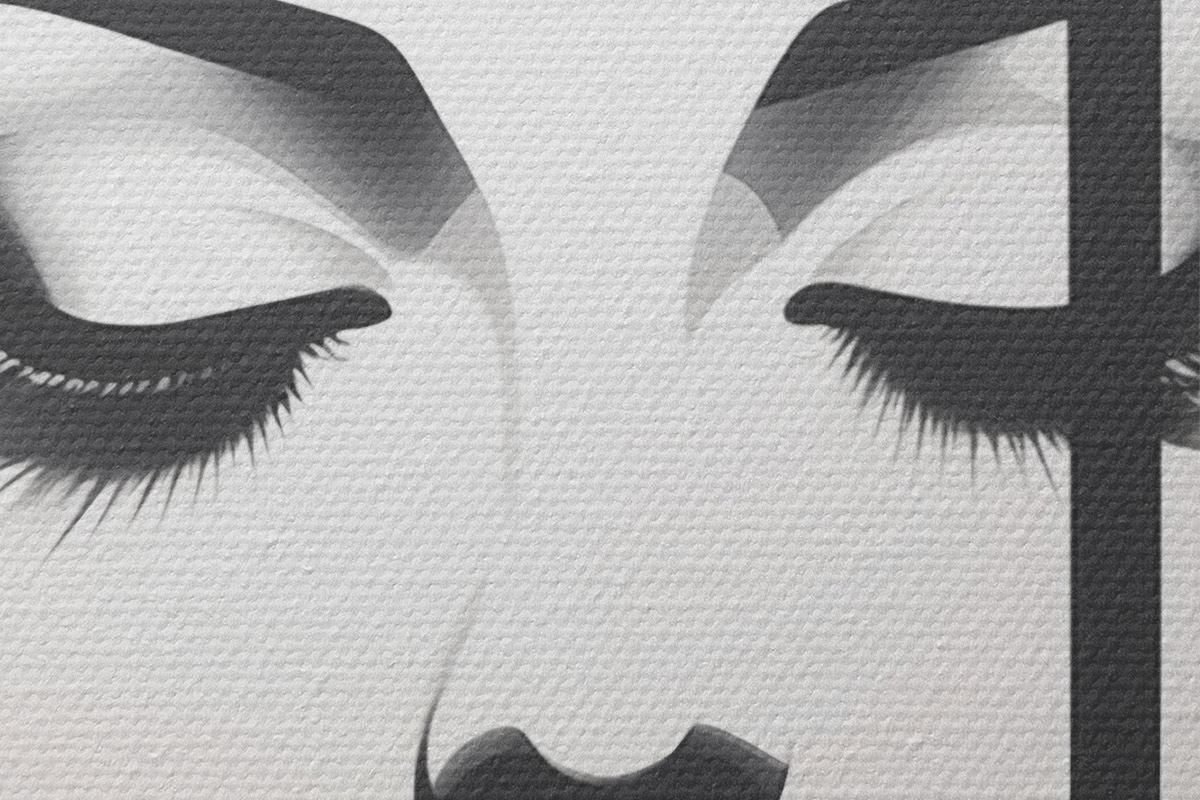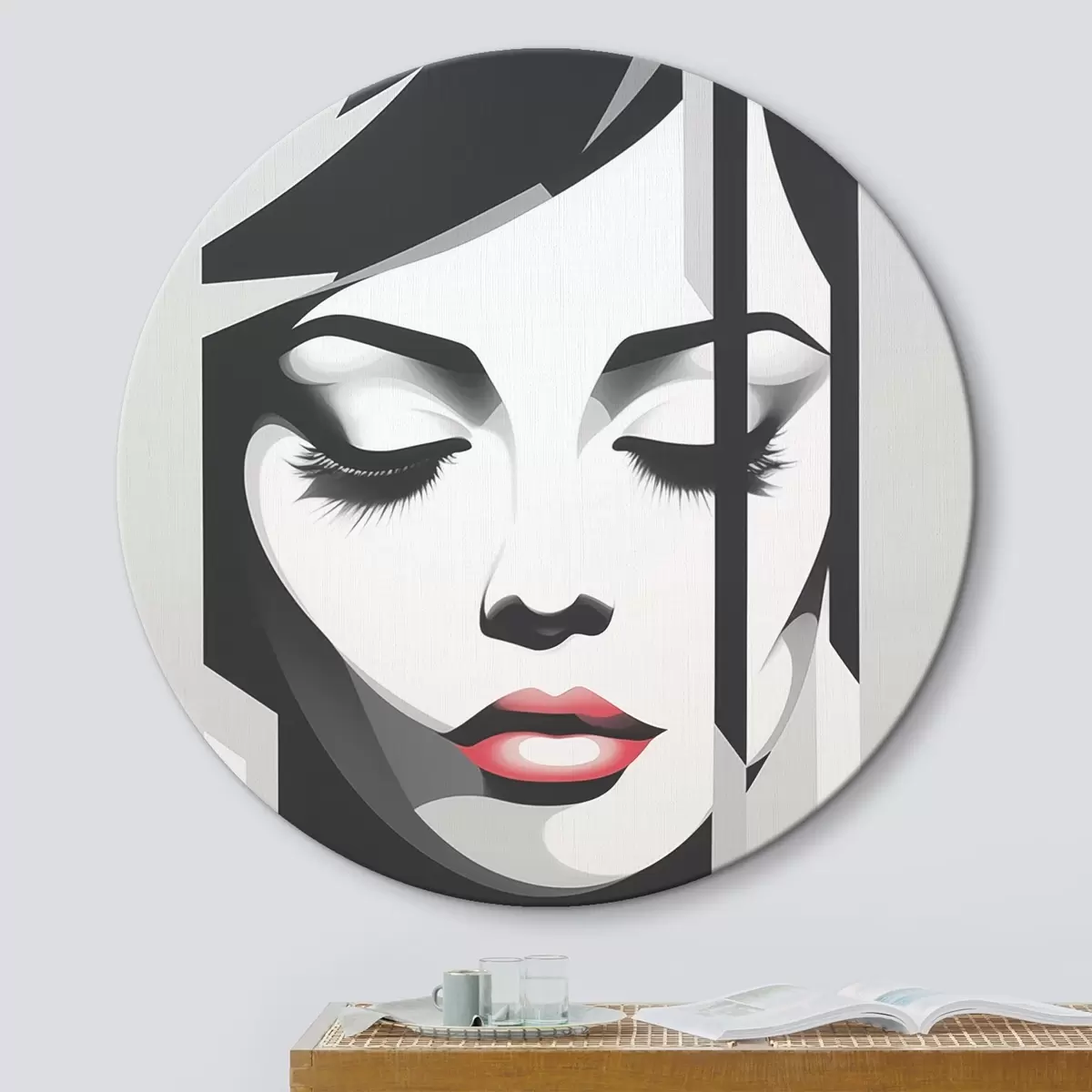 Okrągły obraz Czarno-biała twarz z zamkniętymi oczami Nr r45076