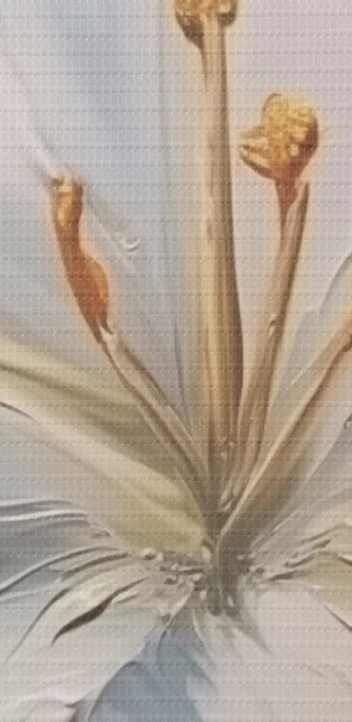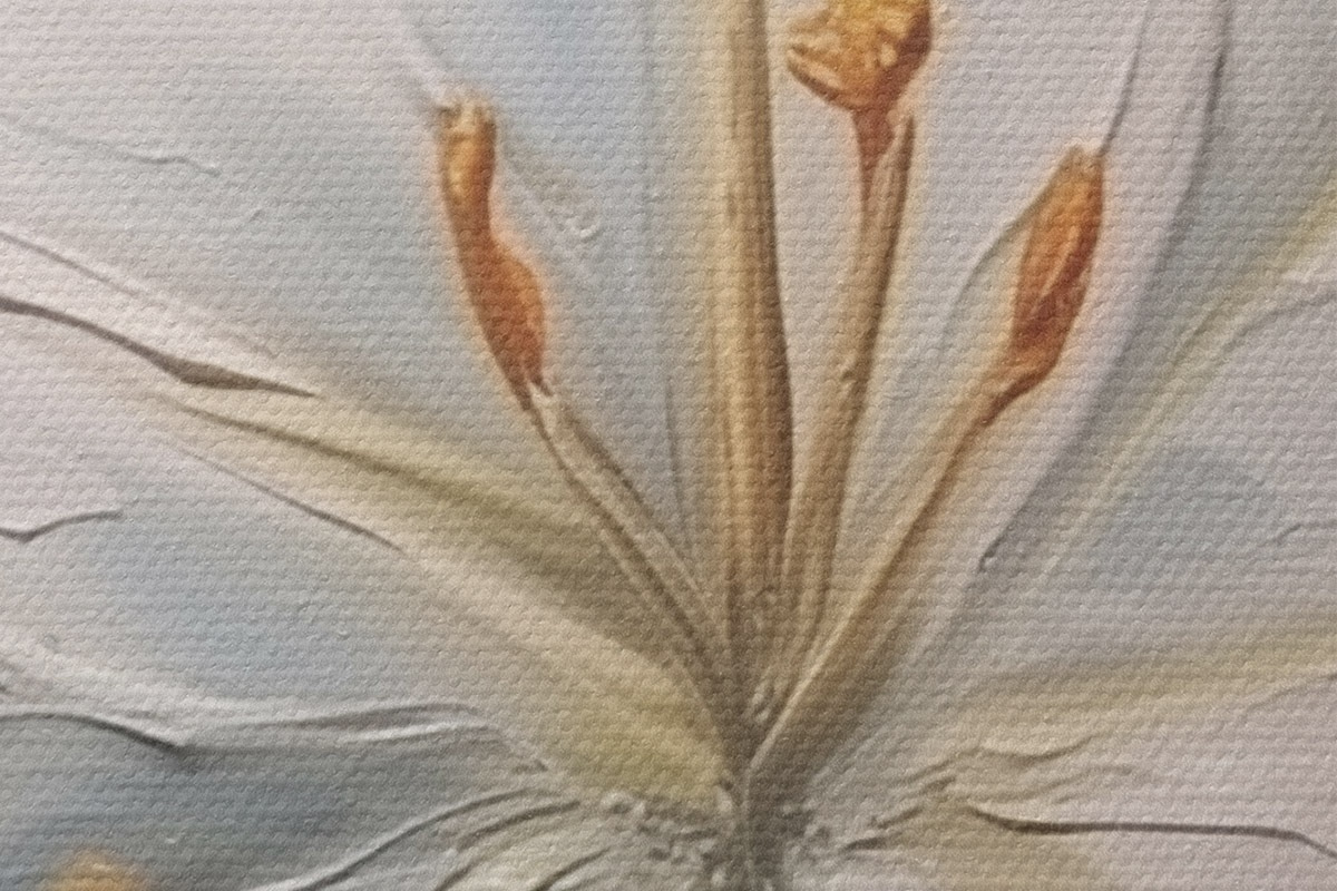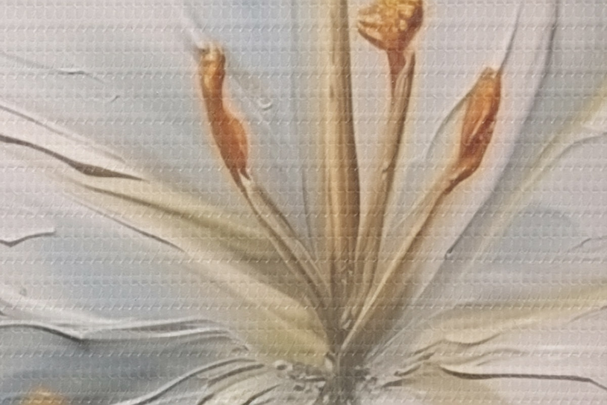 Drobny splot nici na tym płótnie przypomina powierzchnię profesjonalnych płócien artystycznych.