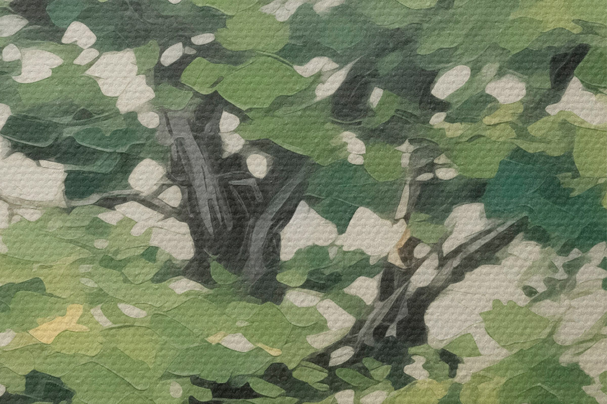 Drobny splot nici na tym płótnie przypomina powierzchnię profesjonalnych płócien artystycznych.