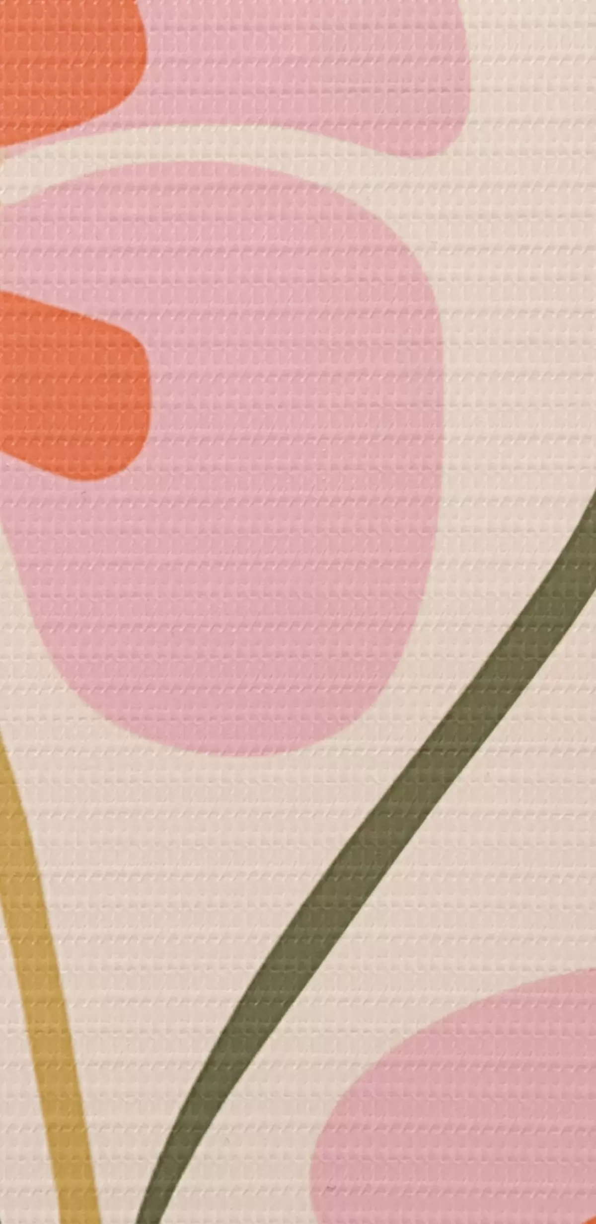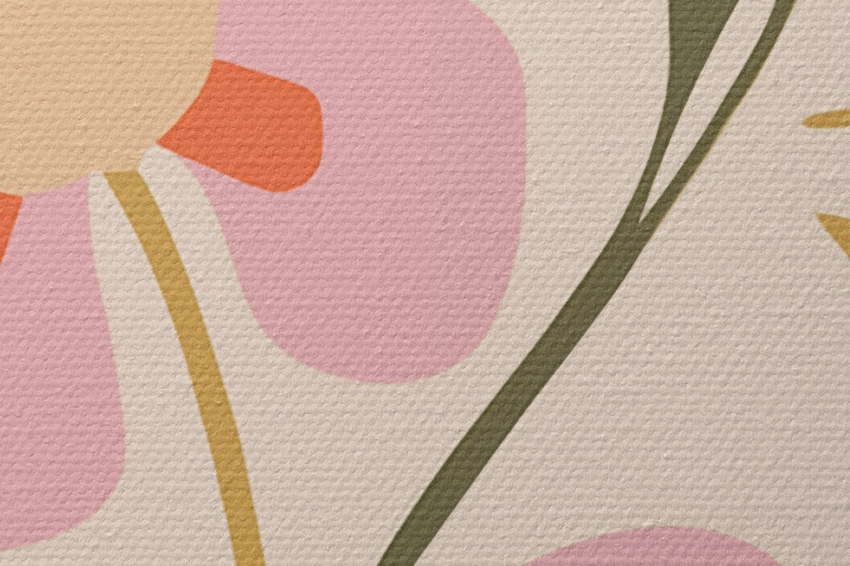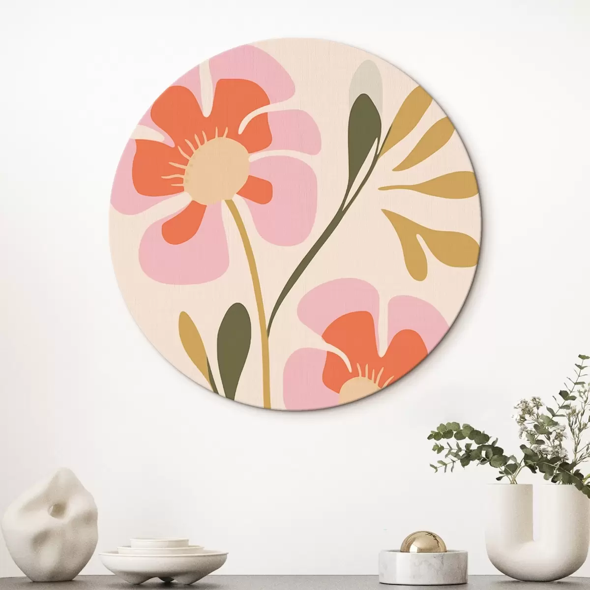 Okrągłe obrazy Stylizowane różowe i pomarańczowe kwiaty z zielonymi liśćmi r45140