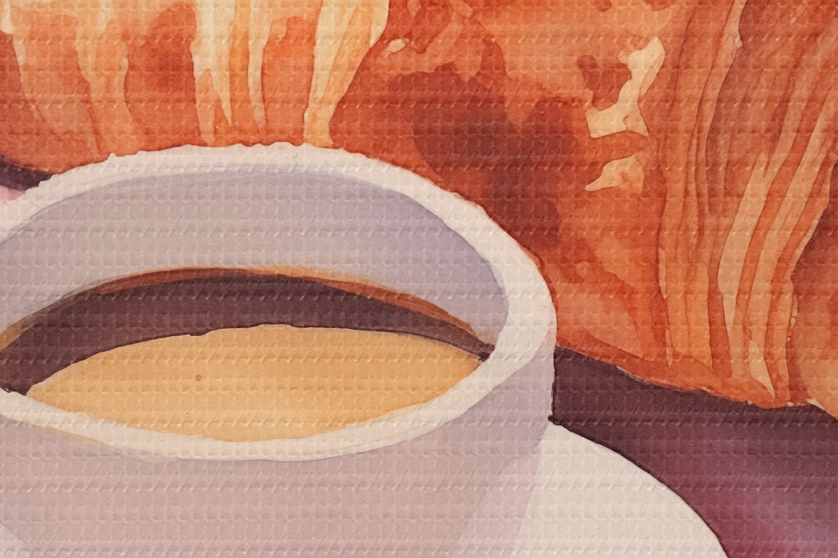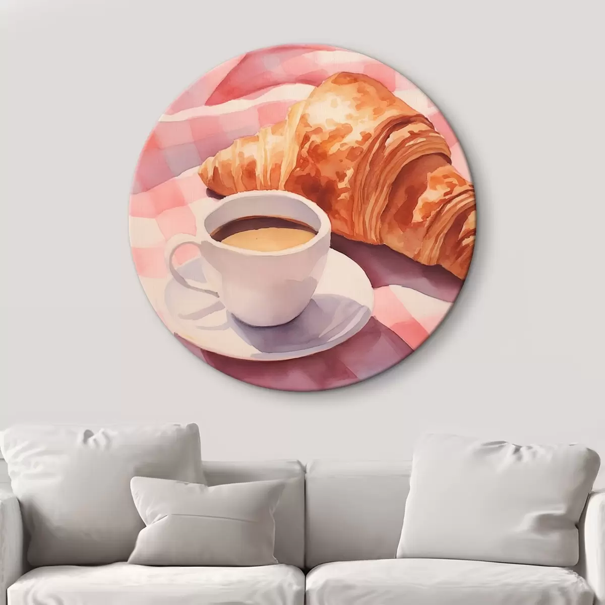 Okrągłe obrazy Kawa z rogalikiem r45143