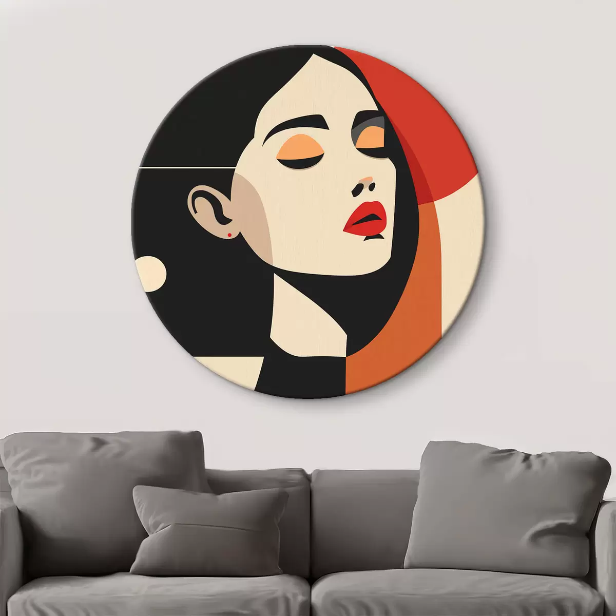 Okrągły obraz Abstrakcyjny portret kobiety w stylu Bauhaus Nr r45166