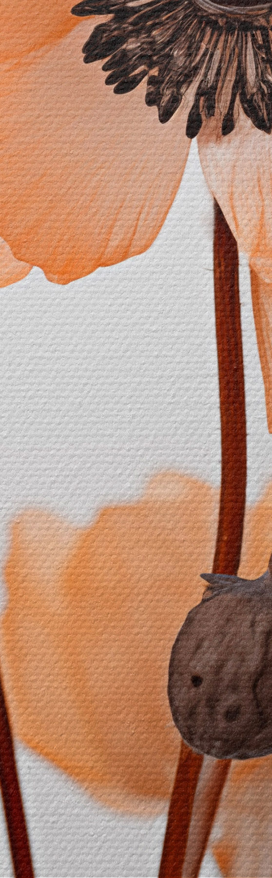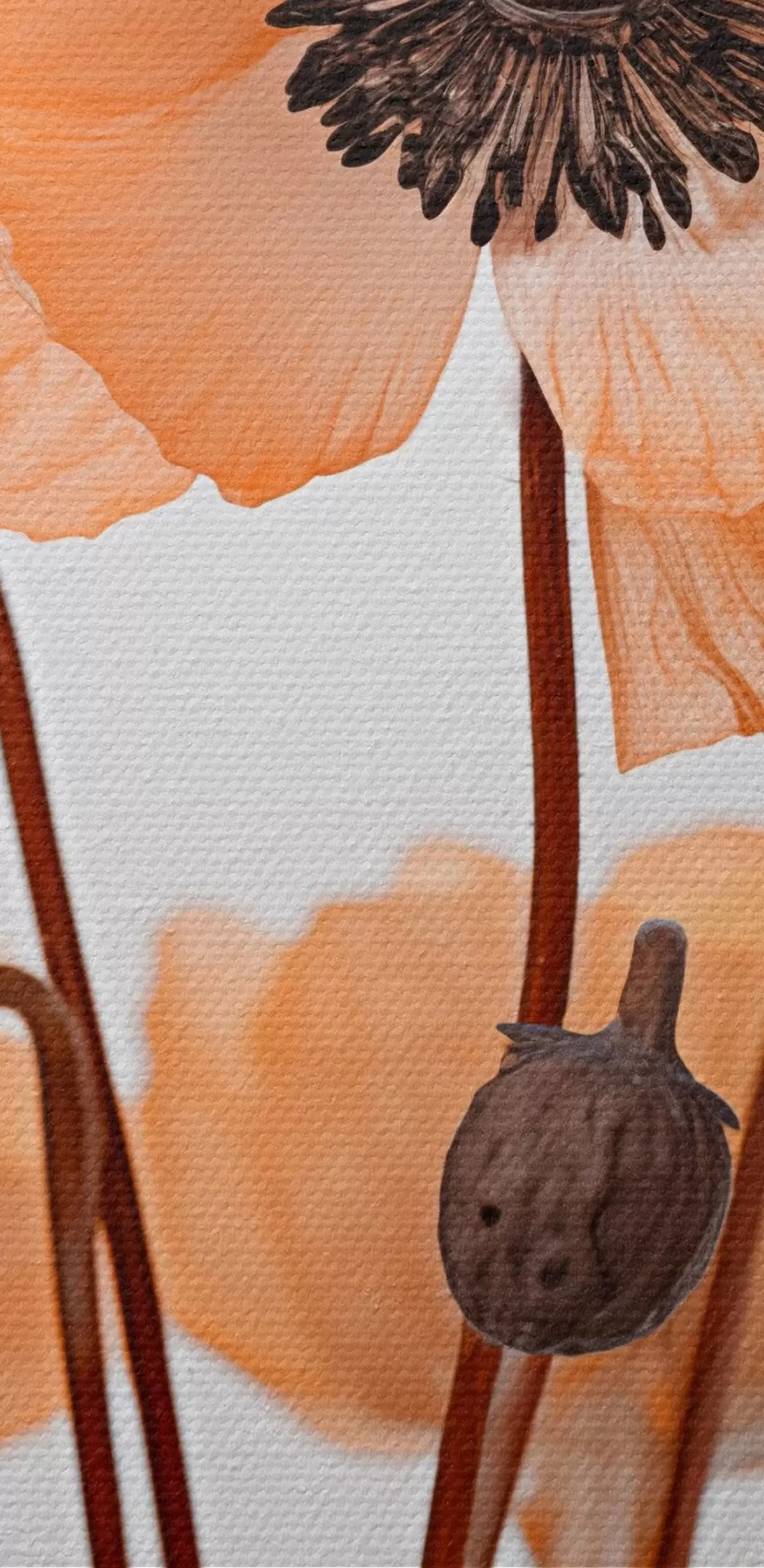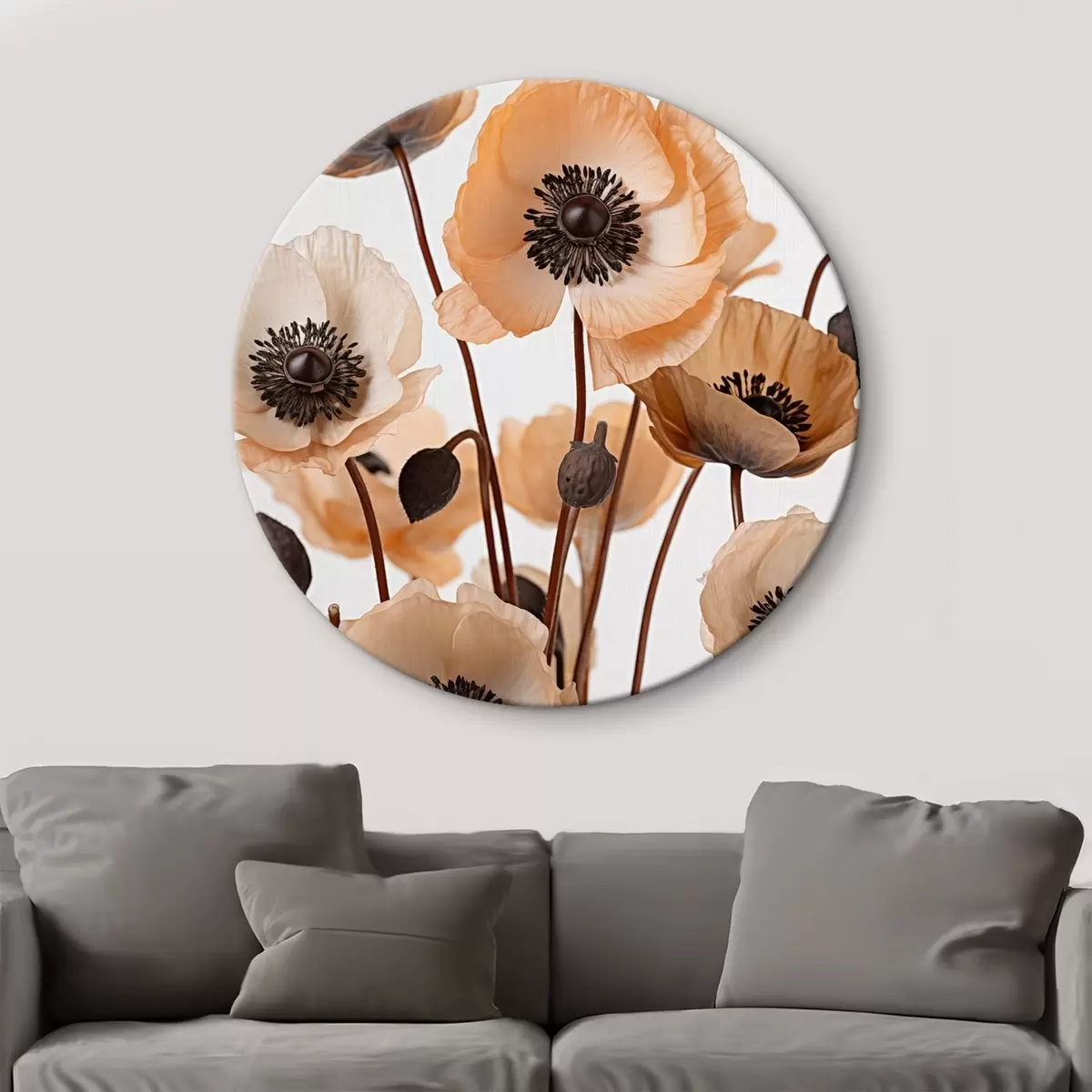 Okrągły obraz Pomarańczowe maki, suszone kwiaty na jasnym tle, miękkie oświetlenie, delikatne płatki, kompozycja kwiatowa Nr r45168