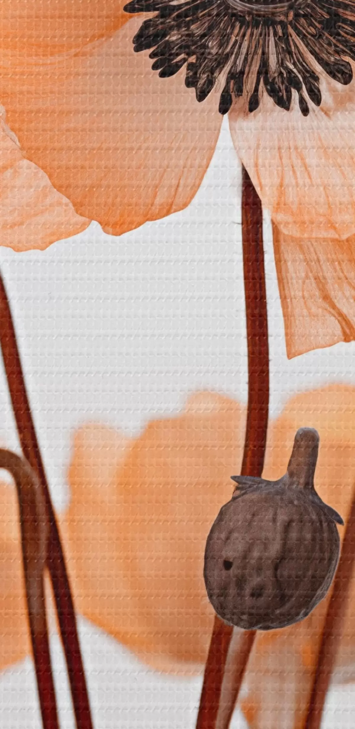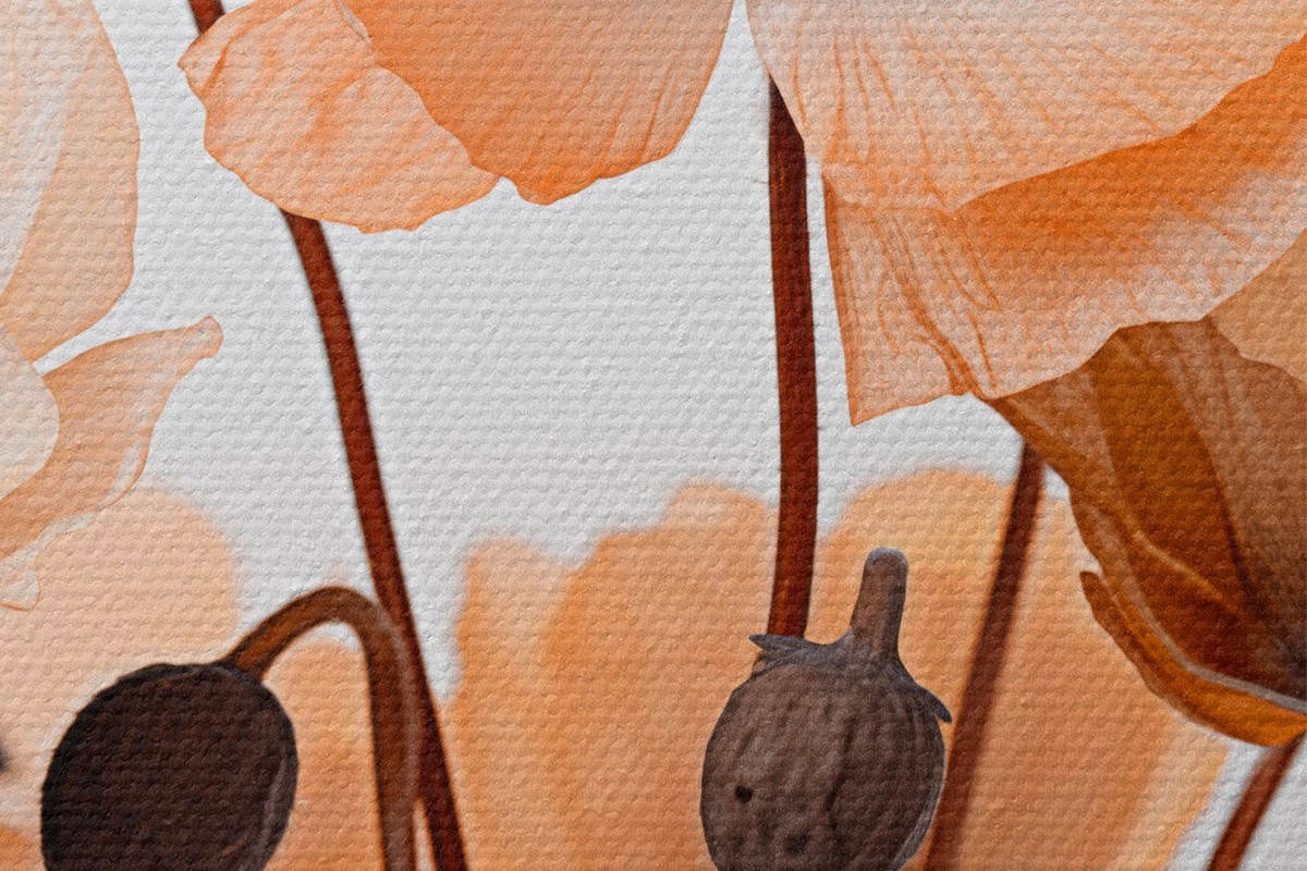 Okrągłe obrazy Pomarańczowe maki, suszone kwiaty na jasnym tle, miękkie oświetlenie, delikatne płatki, kompozycja kwiatowa r45168