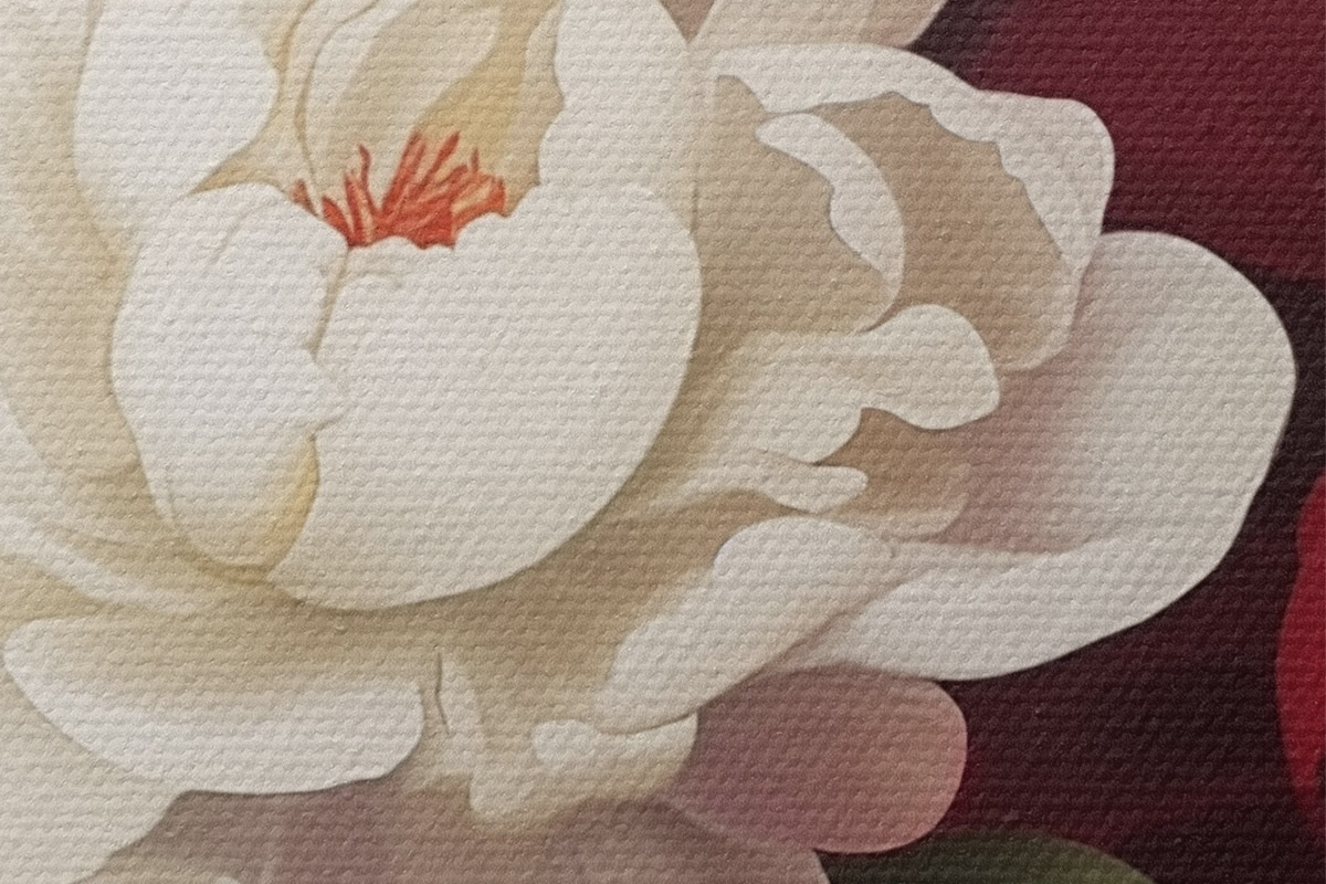 Do zamówienia dostępne są trzy rodzaje materiału: Economic Canvas - gęsty i trwały materiał do druku cyfrowego, identyczny z płótnem malarskim, wodoodporna powierzchnia, realistyczne odwzorowanie szczegółów, materiał średnioziarnisty. Premium Canvas - tekstura przypominająca płótno malarskie (przeplatane drobne nitki). Miękka, szczegółowa reprodukcja obrazu na matowej powierzchni. Eco-Premium - wysokiej jakości tkanina w 100% bawełniana. Dzięki naturalnym włóknom bawełnianym materiał jest trwały i odporny na zużycie. Doskonałe odwzorowanie kolorów i szczegółów.