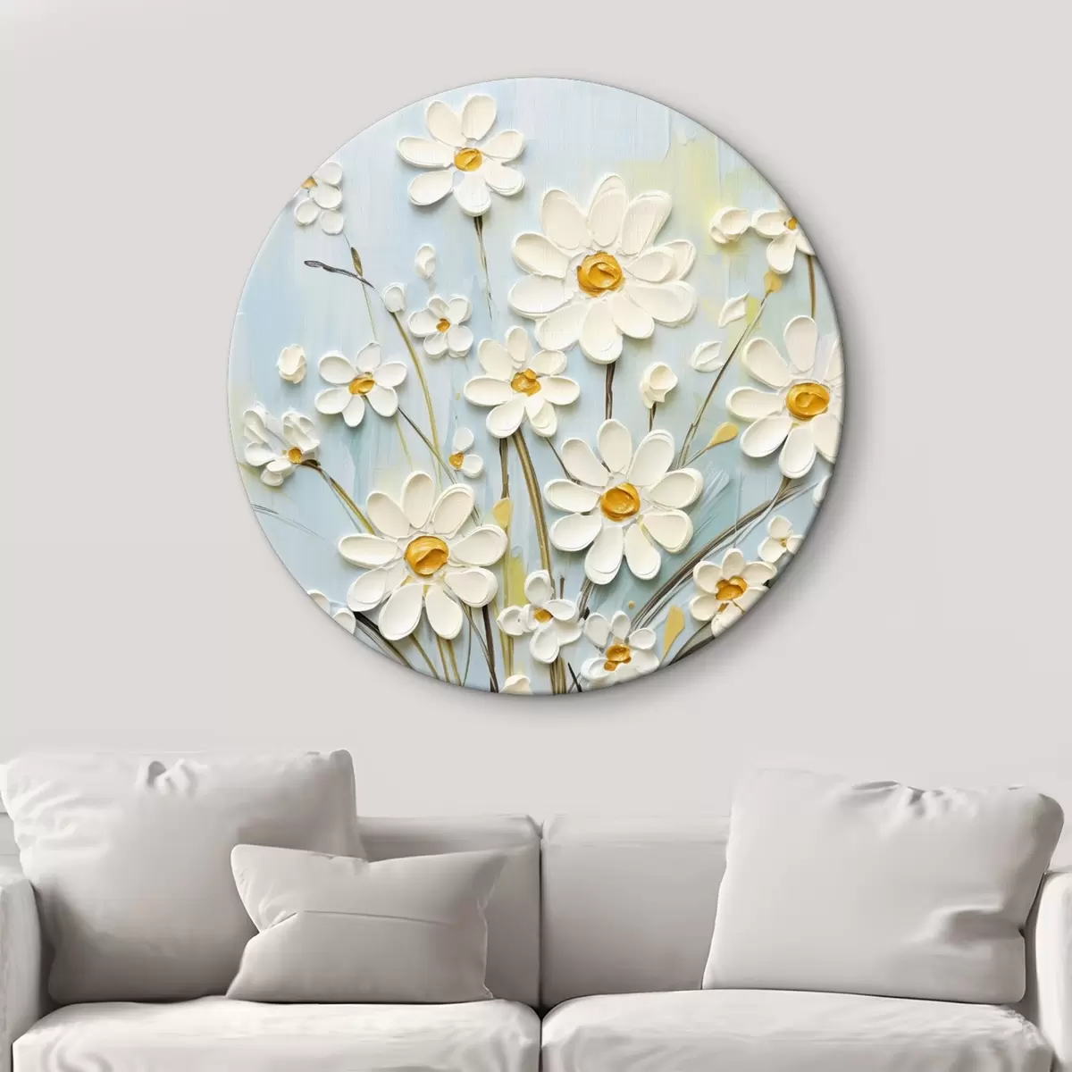 Okrągły obraz Teksturowane stokrotki: sztuka impasto z ekspresyjnymi pociągnięciami pędzla Nr r45266