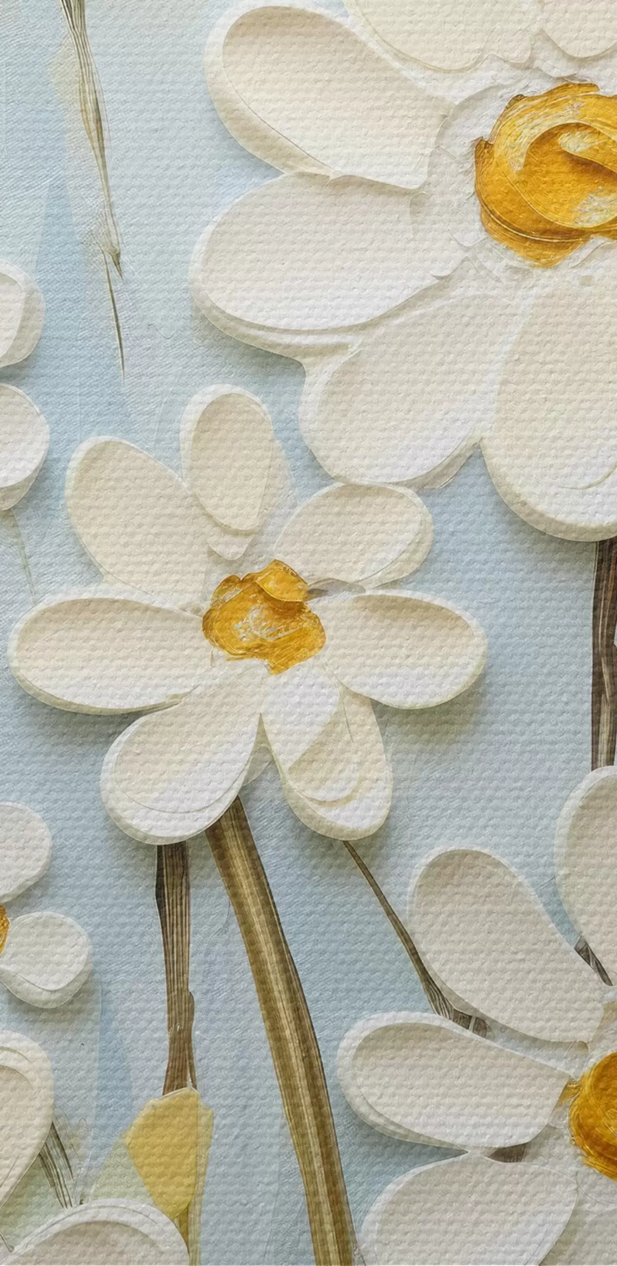 Okrągłe obrazy Teksturowane stokrotki: sztuka impasto z ekspresyjnymi pociągnięciami pędzla r45266