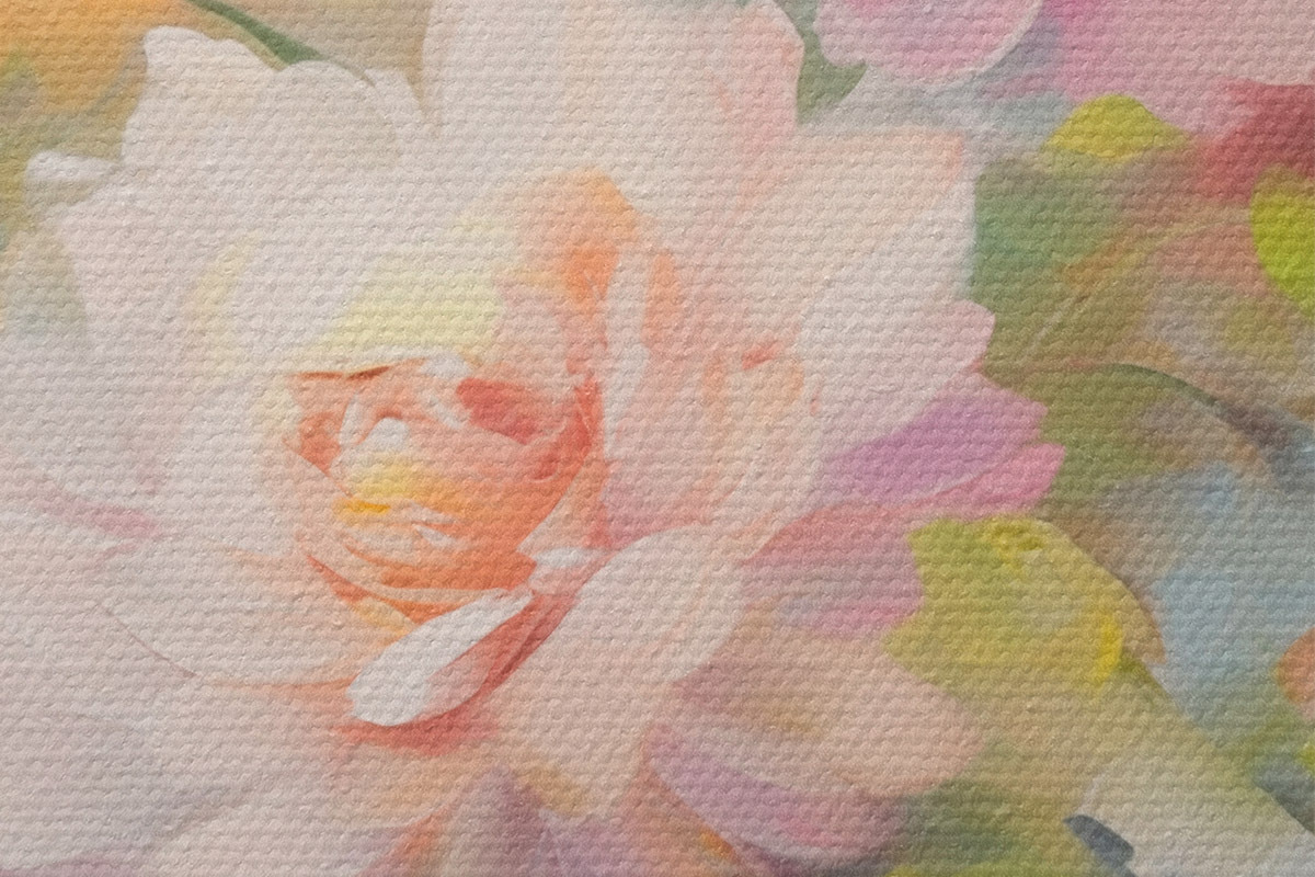 Drobny splot nici na tym płótnie przypomina powierzchnię profesjonalnych płócien artystycznych.