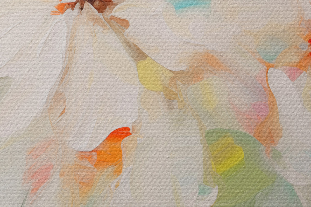 Drobny splot nici na tym płótnie przypomina powierzchnię profesjonalnych płócien artystycznych.