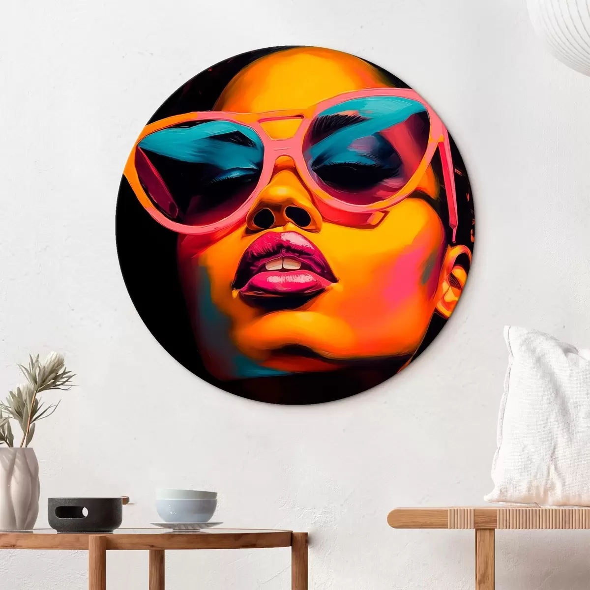 Okrągły obraz Portret kobiety w okularach Nr r45310