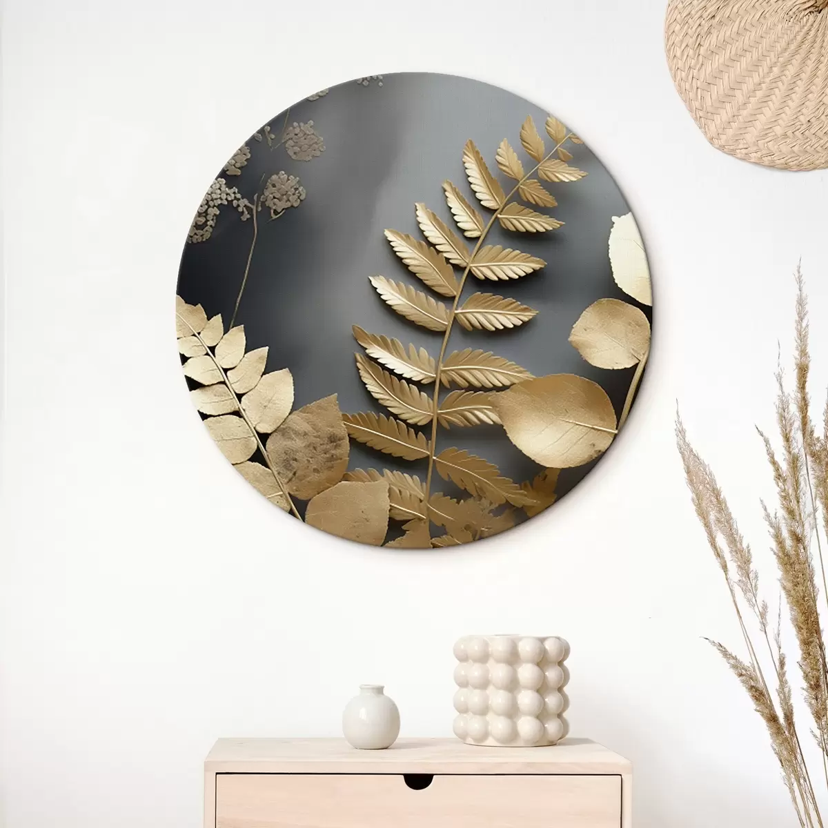 Okrągły obraz Gałęzie eukaliptusa i tropikalne liście na ciemnym tle Nr r45333