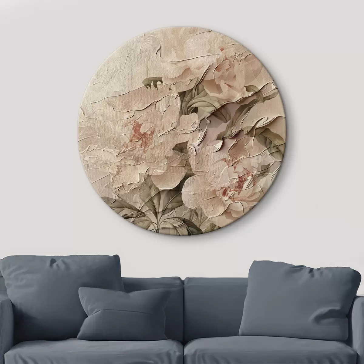 Okrągły obraz Bujny bukiet piwonii w stylu akwareli na jasnym tle Nr r45336