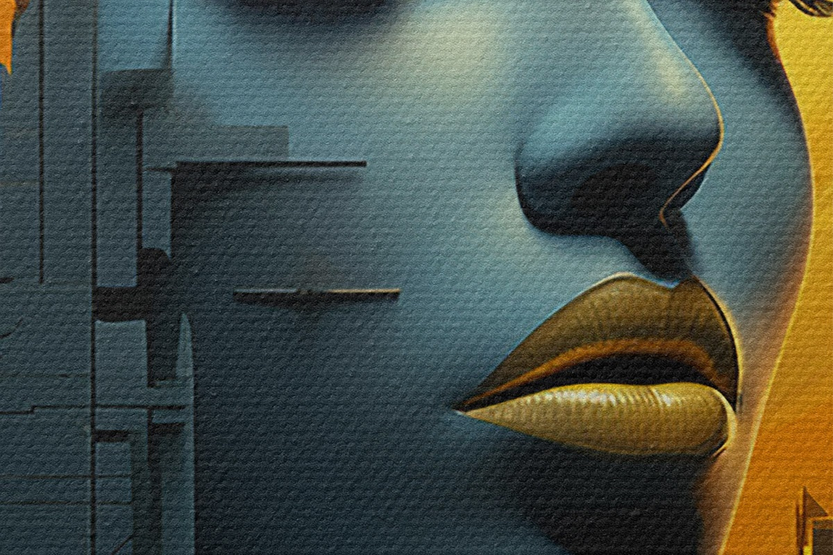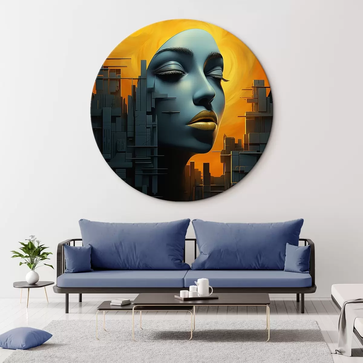 Okrągłe obrazy Ludzie, twarz dziewczyny miasto na abstrakcyjnym tle r45342