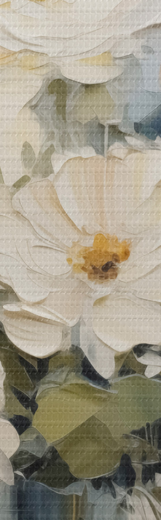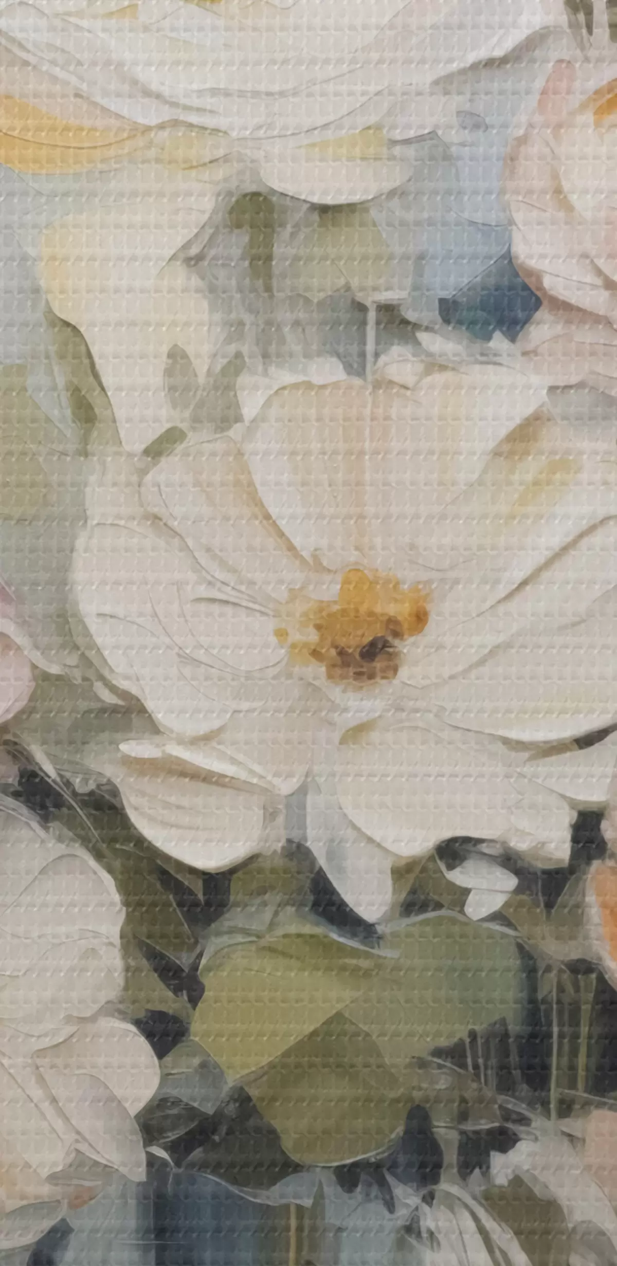 Drobny splot nici na tym płótnie przypomina powierzchnię profesjonalnych płócien artystycznych.