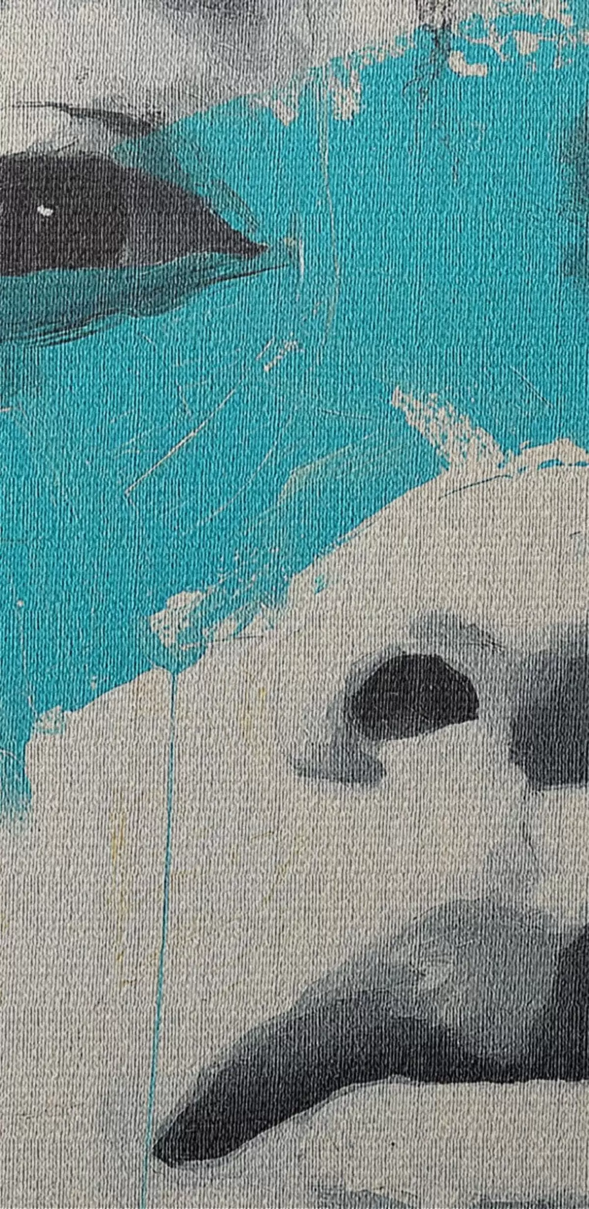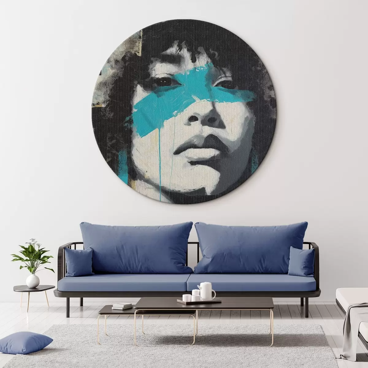 Okrągły obraz Portret mieszany z fragmentami kolorowych pociągnięć i tekstur Nr r45417
