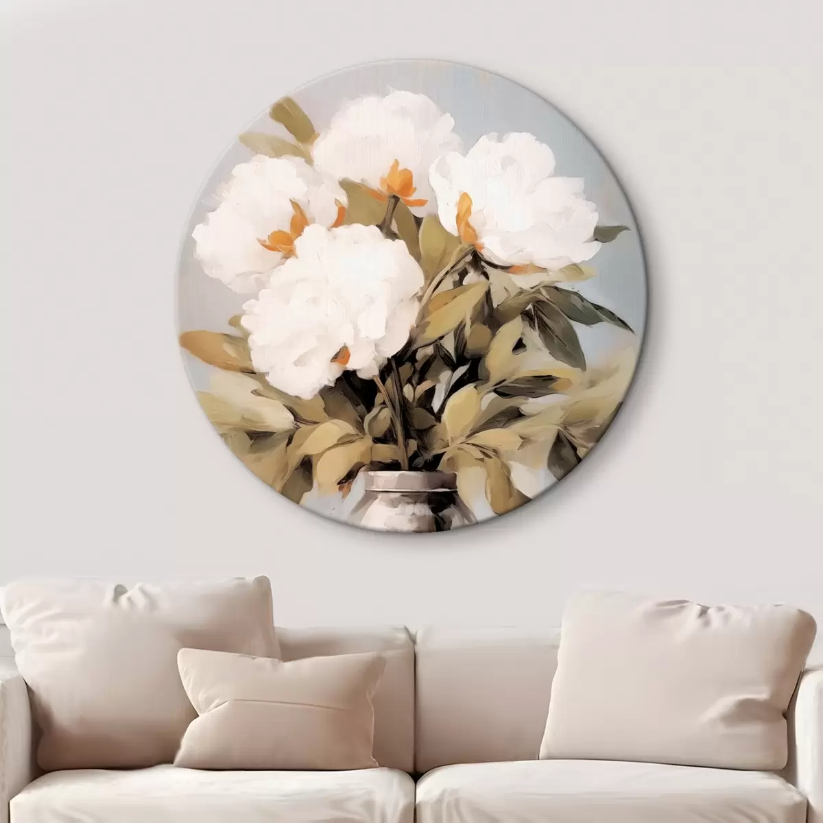 Okrągły obraz Bukiet piwonii w wazonie Nr r45422